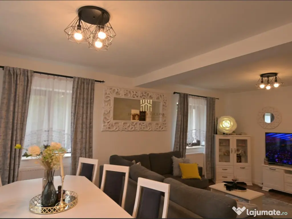Casa Superba de Vanzare Oras Gura Humorului - 0727817187 In zona turistica. Minunata! Living. Spatiu de relaxare. Trei dormitoare. 2 Bai Balcon. Suprafata utila 124,22 mp; Teren: 814 mp; Foisor Curte pavata Centrala termica pe gaz. Canalizare, apa curenta. Curent electric. Drum asfaltat. Sistem video de supraveghere. La 1,5 km distanta de centrul orasului. Se vinde semimobilata. Se poate vinde si complet mobilata insa se adauga ceva la pretul afisat. Pret: 185000 euro; Detalii: 0727817187 www.imobiliaresuceavapremium.ro Număr Băi: 2 Comision cumpărător: 0% Posibilitate parcare: Da Nr. locuri parcare: 2 Curent Apă Canalizare Gaz