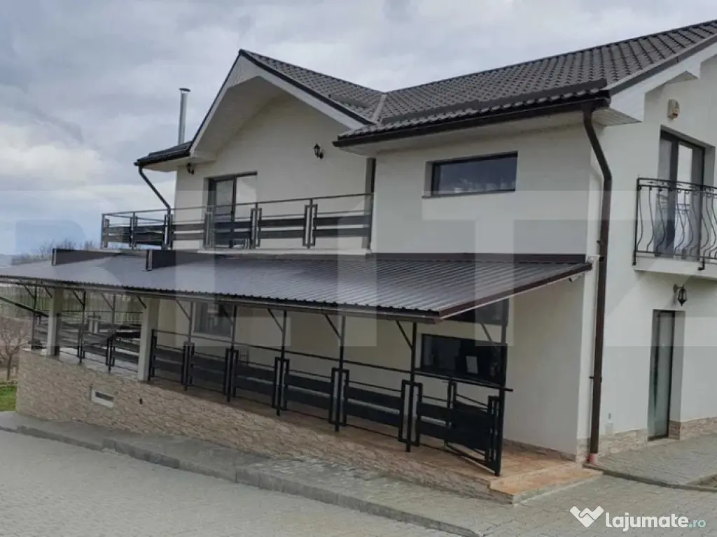 BLITZ va propune spre vânzare o casă superba, construită în 2016, cu o suprafață utilă de 320 mp, situată într-o zonă liniștită, cu acces rapid la zona urbana din Ludus. Teren intravilan avand in total 4472mp, foarte frumos organizat cu zona de curte pavata, cu spatiu de gratar acoperit si spatiu verde (1005mp) loc de gradina cu teren arabil (2665mp) si zona de livada cu pomi fructiferi (802mp) Proprietatea are acces direct din strada asfaltata cu poarta automata cu telecomanda. Casa se vinde complet mobilata si utilata. Compartimentare moderna: Subsol: Garaj cu acces din casa, atelier, camera tehnica, casa scarii, camera depozitare plus o camera pentru depozitare cu acces din exterior Parter: Living generos plus camera de dining, bucatarie moderna spatioasa, baie de serviciu, terasa mare Etaj: Doua dormitoare cu balcon si o baie. Cod ofertă / ID BLITZ: P162652 Id intern: P162652 Număr niveluri imobil: 2 Număr Băi: 2 Curent Apă Canalizare Gaz Climă