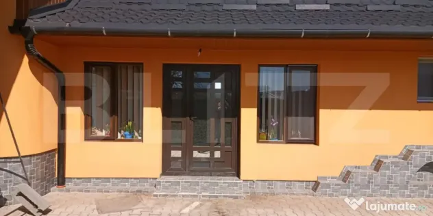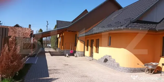 Curtea este frumos amenajata cu pavaj, terasa acoperita, spatiu verde, livada cu pomi fructiferi.