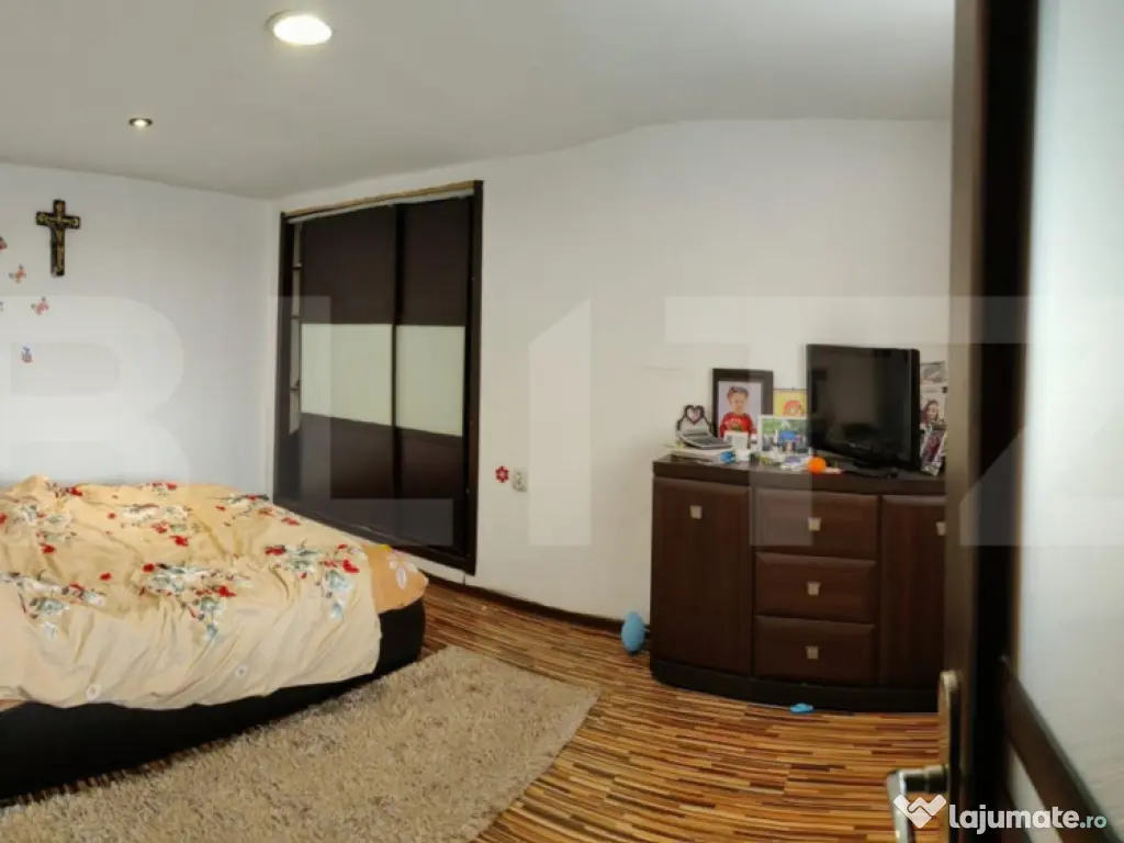 Blitz vă oferă spre vânzare o casă deosebită, construită în anul 1995, cu o suprafață utilă totală de 265mp pe un teren generos de 2667mp. Casa este la intrarea in Reghin dinspre Targu Mures, situata pe teren drept, cu intrare din strada sau din curte. Curtea este frumos amenajata cu pavaj, terasa acoperita, spatiu verde, livada cu pomi fructiferi. Pe teren se afla si doua sere solide, pe fundatie de beton, structura de fier si acoperite cu sticla plus o rasadnita generoasa pe fundatie de beton, acoperita cu plexiglas, ideala pentru a incepe o afacere sau pentru a creste o gradina moderna pentru consum propriu. Casa dispune si de instalatie curent trifazic, este racordata la apa din fantana proprie, la reteaua de gaz si canalizare. Fiind compartimentata in doua zone, in prezent, una pentru locuit si cealalta pentru uz comercial, casa are doua centrale pe gaz si una pe lemn. Incalzirea la parter in zona de locuit este prin pardoseala iar in restul zonelor este cu calorifere. Zona de locuit dispunde de o bucatarie superba complet mobilata si utilata, un living generos, baie, dressing, hol mare, dormitor, scari interioare din beton pentru acces subsol si etaj. Cele doua camere de la subsol sunt finisate cu gresie si faianta, ideale pentru camara, sau spatii de depozitare. La etaj gasim 3 dormitoare. Zona pentru uz comercial in prezent, este compartimentata in doua camere mari cu bai separate si acces etaj pe scara interioara din lemn unde gasim o camera foarte generoasa open space cu iesire in balcoane si o baie. Casa are foarte multe avantaje si beneficii si merita vizionata! Cod ofertă / ID BLITZ: P162623 Id intern: P162623 Număr niveluri imobil: 1 Număr Băi: 4 Curent Canalizare Gaz Climă