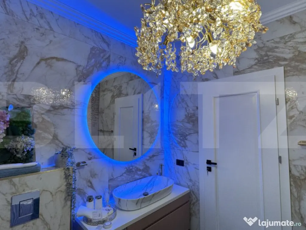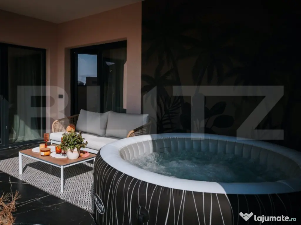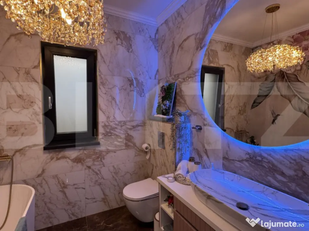 BLITZ propune spre vânzare o frumoasă casă pe parter în stil mediteranean, cu 84 mp utili, pe un teren de 400 mp, în zona Magnolia. Casa se vinde complet mobilată, utilată și ultrafinisată, pentru amenajarea ei s-au folosit serviciile specializate ale unui designer interior. Toate piesele de mobilier, electrocasnicele, elementele de decor interior au fost atent alese folosindu-se doar materiale de calitate. Compartimentarea complet decomandată începe cu hol la intrare din care se intră într-un open space generos care are bucătăria pe stânga și celelalte două dormitoare pe dreapta și baia. Dormitorul matrimonial are dressing propriu și baie separată. Din zona de living se accesează și terasa acaoperită din spatele casei, unde regăsim o zonă de relaxare frumos amenajată care include și un jacuzzi. Curtea este parțial pavată, restul terenului este pregătit pentru gazon sau alte plante decorative, sunt și două locuri de parcare pentru mașini, alte două mai putând fii lăsate la poartă. Propietatea beneficiază de toate utilitățile, încălzirea se realizează prin pardoseală, iar accesul la casă este foarte ușor, se merge doar pe drumuri asfaltate. Cod ofertă / ID BLITZ: P137708 Id intern: P137708 Număr Băi: 2 Curent Apă Canalizare Gaz Climă
