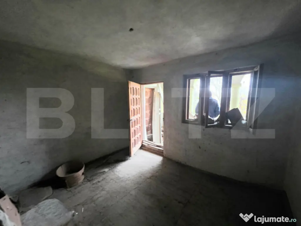 Blitz va propune spre vanzare o proprietate cu potențial excelent, situată în Gheboieni, la numai 15 km de Târgoviște, într-o zonă liniștită, cu priveliște superbă către pădure. Detalii proprietate Casă parter 66 mp, construcție beton + placă (1995) Fără fisuri, structură solidă Beci 15 mp, anexă 30 mp, garaj + încă un beci Stadiu: la gri, ideală pentru renovare Teren 4.300 mp teren generos Front stradal 40 ml Perfect pentru parcelare (2–3 loturi) sau dezvoltare Priveliște directă spre pădure, zonă liniștită Utilități Apă și curent la poartă Momentan deconectate (proprietatea nelocuită de 10 ani) Racordare rapidă, rețele în fața casei Avantaje Poziție foarte bună, aproape de oraș Structură excelentă → investiție sigură Ideală pentru locuit, casă de vacanță sau dezvoltare Zonă naturală, liniște, intimitate Cod ofertă / ID BLITZ: P159717 Id intern: P159717 Număr Băi: 1 Curent Apă