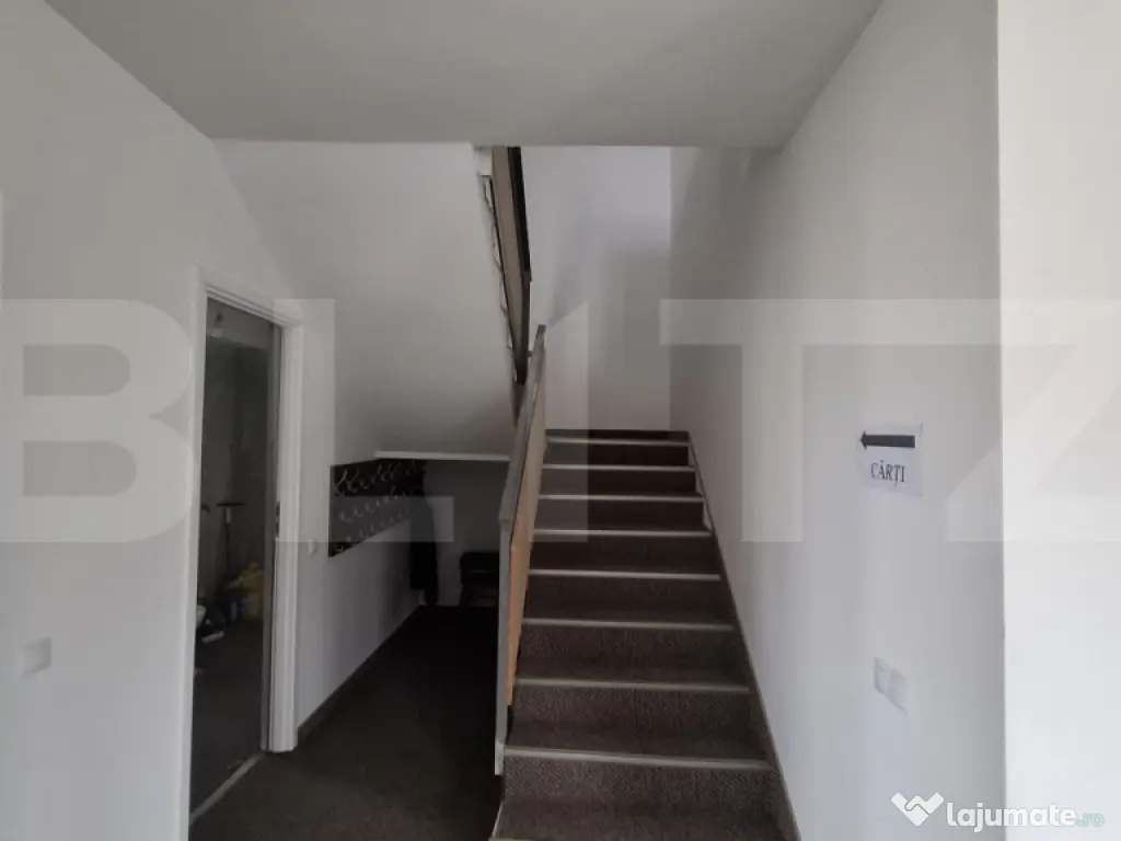 Blitz oferă spre vânzare o casă tip duplex situată într-o zonă cu acces facil la principalele puncte de interes ale orașului. Proprietatea se află la doar 7 minute de mers cu mașina de Aeroportul Internațional Cluj-Napoca. Casa are o suprafață utilă de 127 de metri pătrați și este amplasată pe un teren de 330 mp. Construcția este realizată din cărămidă Evoceramic inteligent de 25 cm și este izolată cu polistiren de 10 cm,finalizata in 2021. Imobilul este dispus pe două niveluri, parter și etaj. La parter se află un hol de intrare, o bucătărie separată, un living cu acces la terasă și grădină, precum și o baie. Etajul este compus din trei dormitoare, două băi și două balcoane. Dispune de toate utilitățile: gaz, apă, canalizare, curent, internet. Pentru mai multe detalii sau pentru a programa o vizionare, vă invităm să ne contactați ! Cod ofertă / ID BLITZ: P155984 Id intern: P155984 Număr niveluri imobil: 1 Număr Băi: 2 Curent Apă Canalizare Gaz