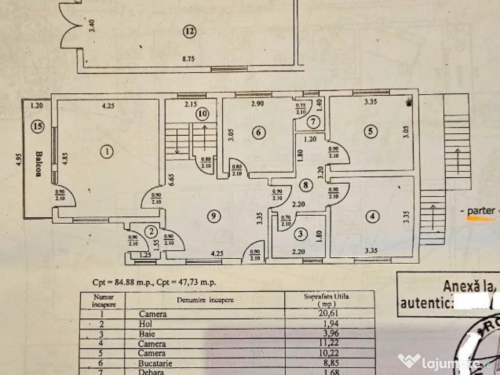 FORTUNA IMOBILIARE oferă spre achiziționare un imobil compus din suprafața de 174 mp teren în proprietate exclusivă și apartament situat in casă tip duplex, construită în anul 2003, pe fundații din beton armat, zidărie din cărămidă, acoperită cu tablă.