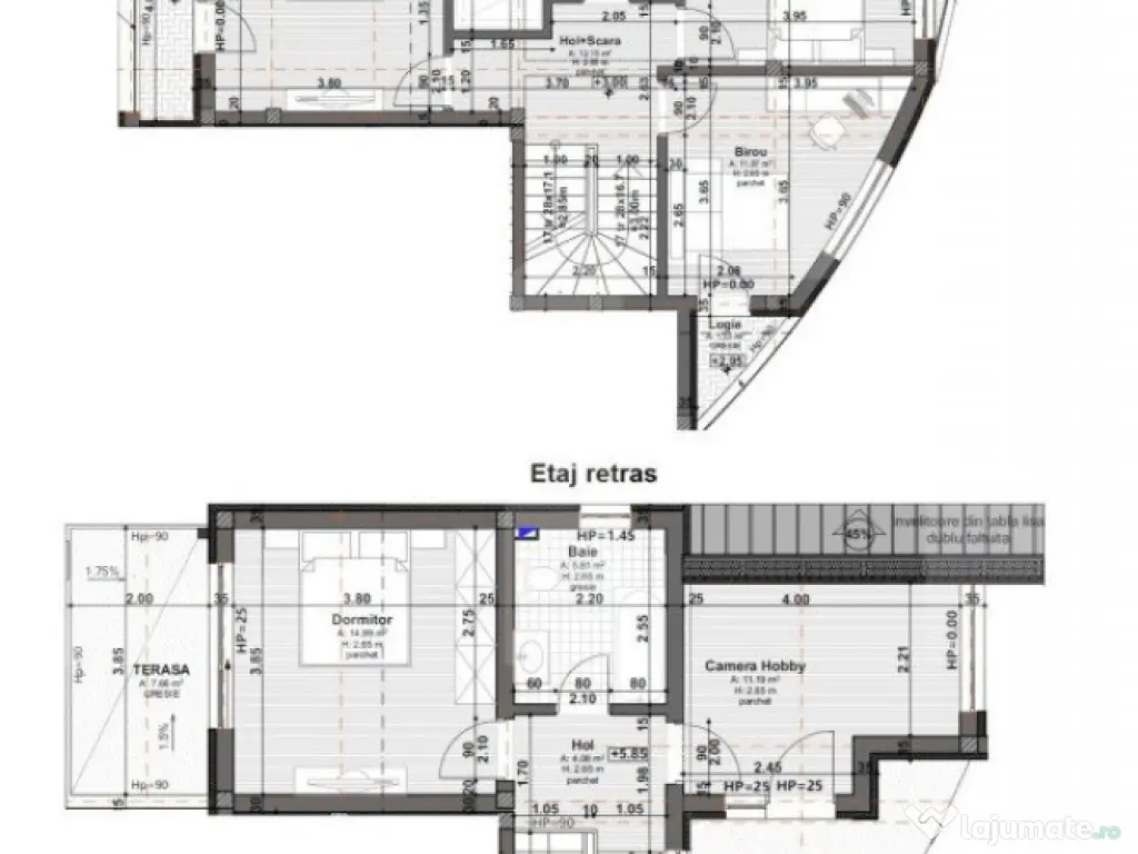BLITZ ofera spre vanzare o casa tip duplex, parte dintr-un ansamblu modern format din 6 unitati locative, cu acces extrem de facil spre centru orasului, ce poate deveni caminul unei familii ce apreciaza confortul oferit de spatiile generoase si linistea zonei! Unitatea de duplex este amplasata pe un lot de teren de 227 mp, cu front de 12 ml, compartimentata pe 4 niveluri fiind gandita sa ofere confortul unei locuinte aerisite si moderne. Astfel cei 189 mp utili se dupa cum urmeaza: SUBSOL in suprafata de 44 mp, open space. La parter gasim 1 hol, 1 baie, bucatarie separat, living de 28 mp si scara interioara cu spatiu de depozitare. ETAJUL este desfasurat pe o suprafata de 66 mp, fiind compus din 3 dormitoare fiecare cu balcon privat, 2 bai. La etajul retras se afla 1 dormitor de 15 mp, 1 camera de hobby, 1 baie si 2 terase generoase. Pentru a putea fi personalizata asa cum iti doresti, proprietatea se vinde la stadiul de semifinisat. Toate detaliile tehnice confirma materialele premium folosite in construirea casei: zidărie de 30 cm si termoizolație cu vata bazaltica, tâmplărie PVC cu 3 sticle, centrală termică cu incălzire prin pardoseala, precum si toate instalatiile electrice si sanitare trase la pozitie. Casa va fi predata cu toate utilitatile functionale si partea de exterior finalizata, garduri și locuri de parcare amenajate. Pentru achizitia pe persoana fizica, la pretul de promovare se adauga si TVA. Pentru mai multe detalii si stabilirea unei vizionari va stam cu placere la dispozitie! Cod ofertă / ID BLITZ: P2644 Id intern: P2644 Număr niveluri imobil: 2 Număr Băi: 4 Nr. locuri parcare: 1