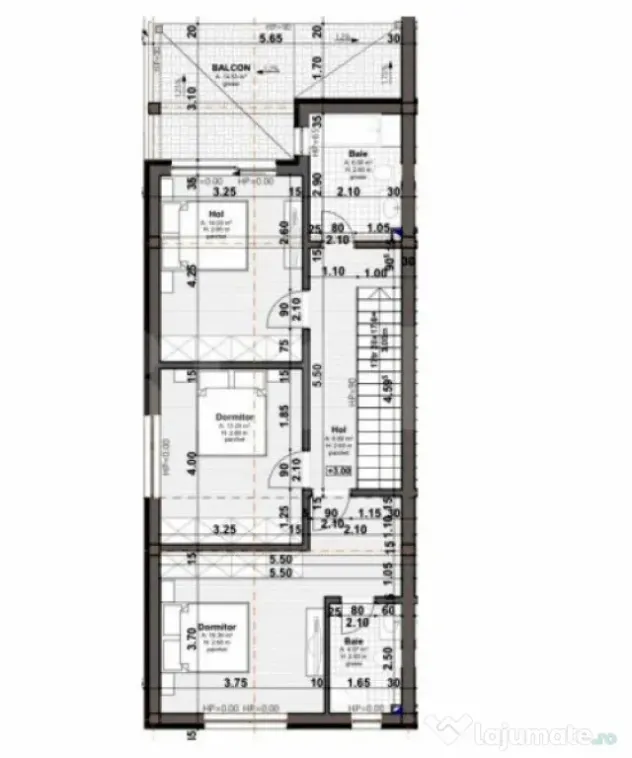Etaj: 3 dormitoare, 2 băi – dintre care un dormitor matrimonial cu baie proprie și balcon privat