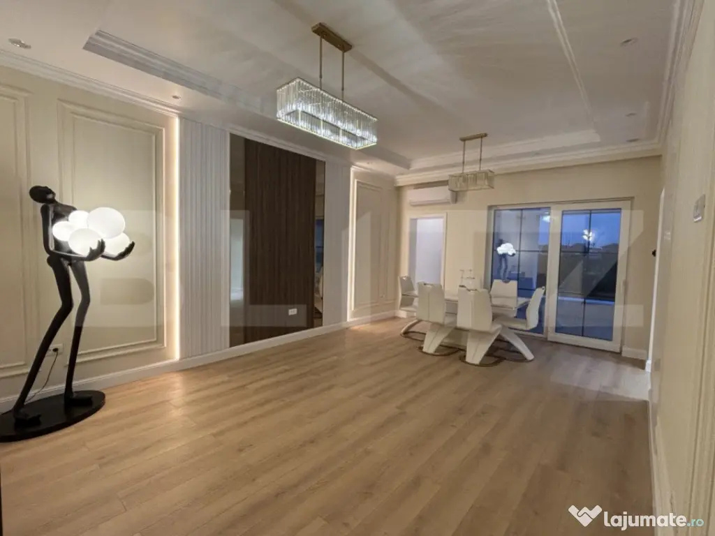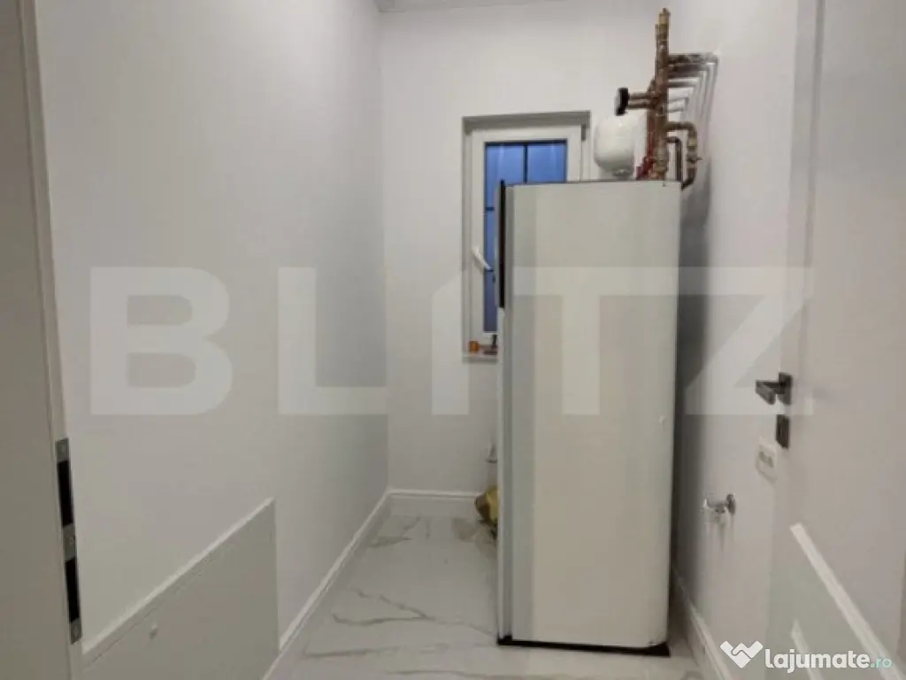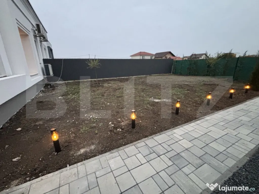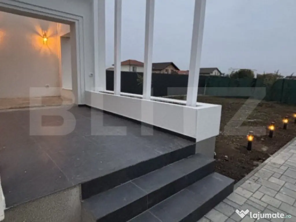 Blitz lmobiliare va propune spre vanzare o casa tip duplex situat in Dumbravita, avand finisaje si dotari premium, cu o suprafata utila de 98 mp, o terasa descoperita in suprafata de 11 mp, curte generoasa si amenajata cu gazon si plante ornamentale. Duplexul se compune din hol, living cu zona de dining si acces pe terasa, bucatarie inchisa, 3 dormitoare, din care cel matrimonial detine o baie proprie dotata cu dus, si o a doua baie dotata cu cada free standing. Proprietatea se vinde semi-mobilata, cu amenajari interioare si finisaje de calitate superioara, sistem de supraveghere video, alarma cu senzori de miscare, sistem audio in tavan cu 8 boxe si doua cai, sistem automatizat de irigare. Pe timpul iernii confortul termic este asigurat de pompa de caldura performanta legata la curent trifazic, cu incalzirea prin pardoseala, termostate wireless in fiecare camera iar vara confortul este asigurat de sistemul AC pe care il detine casa. Acest imobil nu este doar o locuinta, ci un loc unde poti construi amintiri frumoase, intr-o atmosfera de liniste si confort. Amplasat intr-o locatie deosebita cu acces usor la centura de N a Timisoarei, dar totodata retras, acest camin ofera echilibrul perfect intre viata moderna si nevoia de natura si spatiu. Te invit cu drag la vizionare! Cod ofertă / ID BLITZ: P136005 Id intern: P136005 Număr Băi: 2 Nr. locuri parcare: 2 Curent Apă Canalizare Gaz Sistem irigaţie Climă