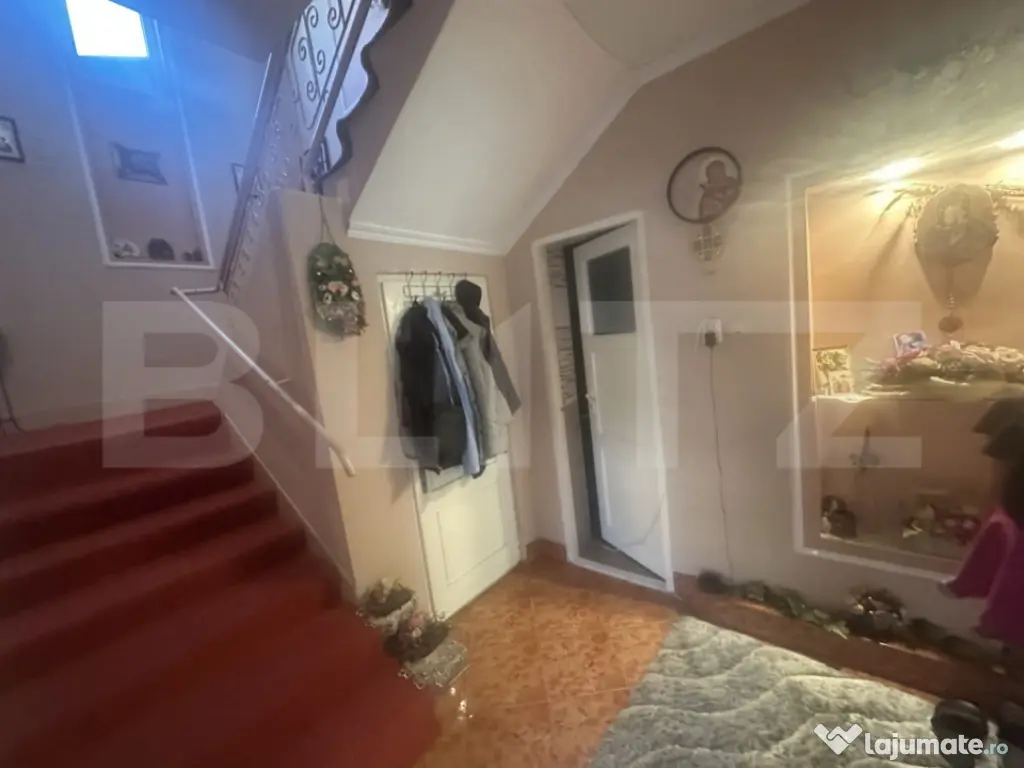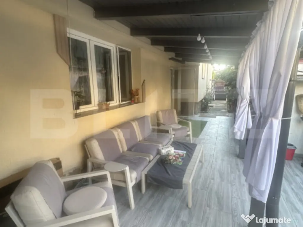 Blitz vă propune spre vânzare o proprietate deosebită, perfectă pentru cei care caută un cămin primitor, bine compartimentat și situat într-o zonă convenabilă, cu acces rapid către toate facilitățile urbane. Casa este construită pe un teren de 260 mp și are o suprafață utilă generoasă de 200 mp, desfășurată pe parter și etaj (tip P+E) având 5 camere separate.. Parterul găzduiește o baie spațioasă, modern amenajată, un living generos și luminos, o bucătărie funcțională și camere bine dimensionate, ideale pentru relaxare sau birou..In curtea casei veți găsi un garaj închis, ideal pentru protejarea mașinii.Etajul oferă încăperi suplimentare, ideale pentru o familie extinsă sau pentru spații de lucru/de studiu, toate beneficiind de lumină naturală din plin.Locuința este dotată cu termopane, centrală termică proprie, ceea ce oferă un confort termic ridicat. Curtea este cochetă și bine întreținută, oferind intimitate și un colț verde de relaxare. În curtea casei se află o terasă acoperită, perfectă relaxare. În continuarea terasei, proprietatea mai include un apartament complet separat, compus dintr-o cameră, o bucătărie, o baie și o cămară pentru alimente – o soluție excelentă pentru găzduirea membrilor familiei extinse sau pentru o alta familie. Toate acestea fac din această casă o alegere ideală pentru două familii, sau pentru cei care doresc să locuiască împreună cu părinții, oferind fiecăruia spațiul și intimitatea de care are nevoie. Imobilul se află într-o zonă apreciată și bine cotată, în proximitatea magazinelor, pieței și altor puncte de interes, ceea ce asigură un stil de viață comod și urban, fără a pierde farmecul unei zone liniștite. Cod ofertă / ID BLITZ: P153081 Id intern: P153081 Număr Băi: 2 Curent Apă Canalizare Gaz Climă