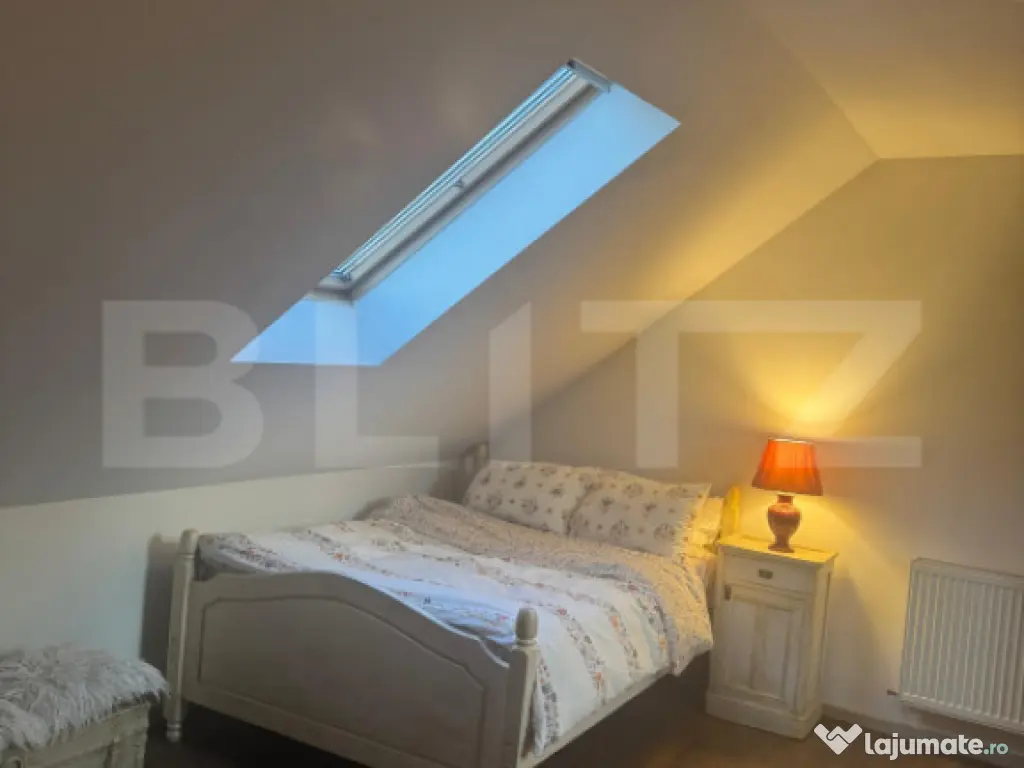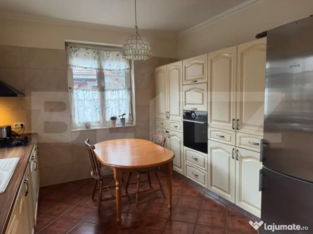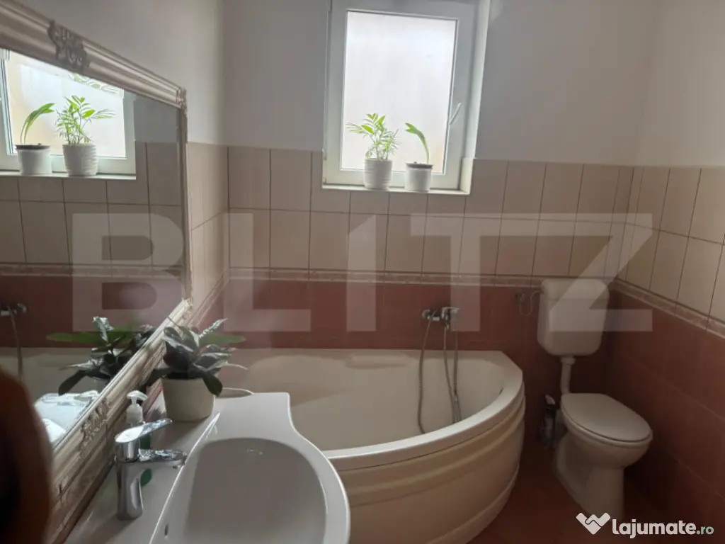 Blitz ofera spre inchiriere o casa individuala, situata in zona ultracentrala, cu o suprafata utila de aproximativ 160 mp, dispusa pe 2 nivele si cu subsol. Proprietatea este compartimentata in 6 camere, dintre care 3 dormitoare, 2 bai, spatii generoase pentru living sau birou, precum si balcon de aproximativ 15 mp. Casa este complet mobilata si utilata, fiind pregatita pentru mutare imediata. Beneficiaza de curte proprie, cu zona special amenajata pentru gratar. In plus, dispune de loc de parcare in fata casei. Datorita amplasarii ultracentrale si a compartimentarii eficiente, proprietatea este potrivita atat pentru locuinta unei familii, cat si pentru activitati precum birouri, sediu firma sau alte servicii. Pretul este negociabil. Cod ofertă / ID BLITZ: P165094 Id intern: P165094 Număr niveluri imobil: 1 Număr Băi: 2 Nr. locuri parcare: 1 Curent Apă Canalizare Gaz Sistem irigaţie Climă