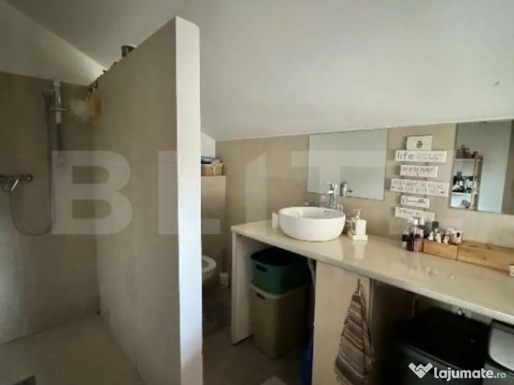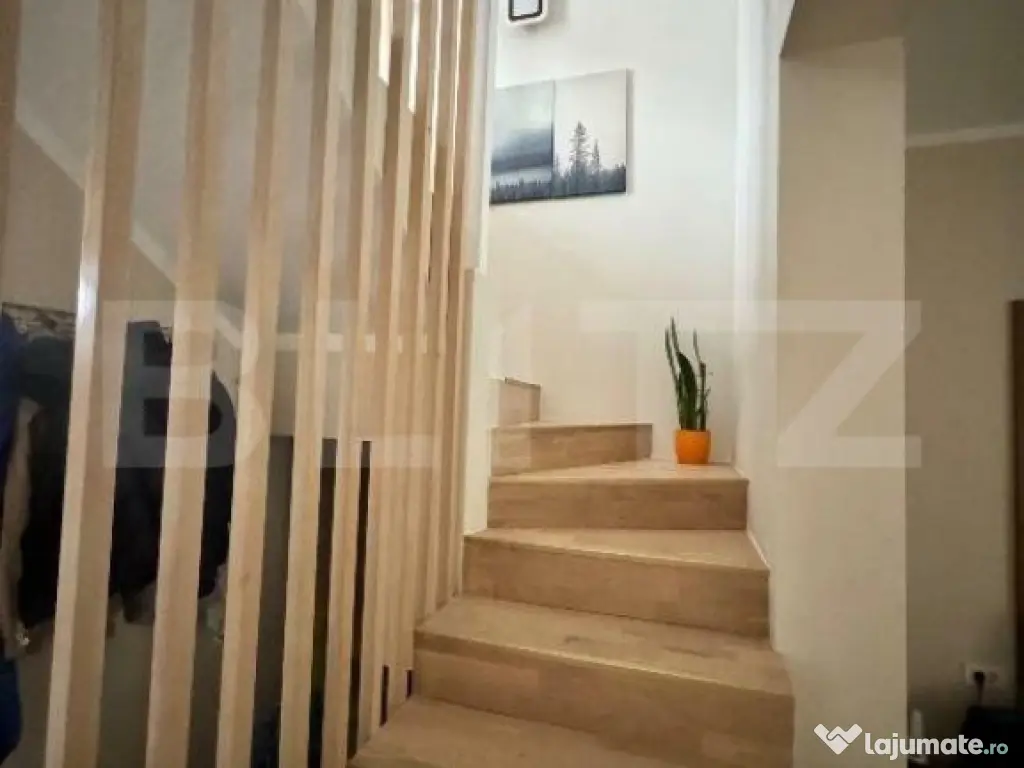 Blitz va ofera spre vanzare aceasta casa inșiruită in Dumbrăvița care este situată într-un loc idilic, aproape de pădure, oferindu-ți un refugiu perfect în mijlocul naturii. Designul modern al acestei locuințe se reflectă prin detalii elegante și finisaje de calitate. Casa dispune de patru camere spațioase, dintre care una este un dormitor generos, echipat cu dressing și balcon, ideal pentru momente de relaxare. Bucătăria semi-deschisă este perfectă pentru cei care iubesc să gătească și să socializeze în același timp. Cele două băi moderne oferă confortul necesar pentru întreaga familie. Podul casei este bine izolat atât pe acoperiș, cât și pe tavan, oferind un spațiu de depozitare suplimentar sau posibilitatea de a fi amenajat după preferințe. Casa beneficiază de o centrală termică proprie și un boiler electric, asigurând astfel o eficiență energetică ridicată. Garajul spațios, adiacent locuinței, este ideal pentru a-ți proteja vehiculul sau pentru a fi folosit ca spațiu de lucru. Grădina frumos îngrijită, cu pomi fructiferi, adaugă un farmec deosebit proprietății, creând un loc perfect pentru relaxare în aer liber. Terasa complet acest ansamblu, oferindu-ți un spațiu ideal pentru momente de relaxare și socializare. Această casă înșiruită reprezintă o oportunitate rară de a trăi într-o locație liniștită, cu toate facilitățile moderne la îndemână, fiind locul perfect pentru a-ți construi amintiri prețioase alături de cei dragi. Cod ofertă / ID BLITZ: P137552 Id intern: P137552 Număr niveluri imobil: 1 Număr Băi: 2 Nr. locuri parcare: 2 Curent Apă Canalizare Gaz Climă
