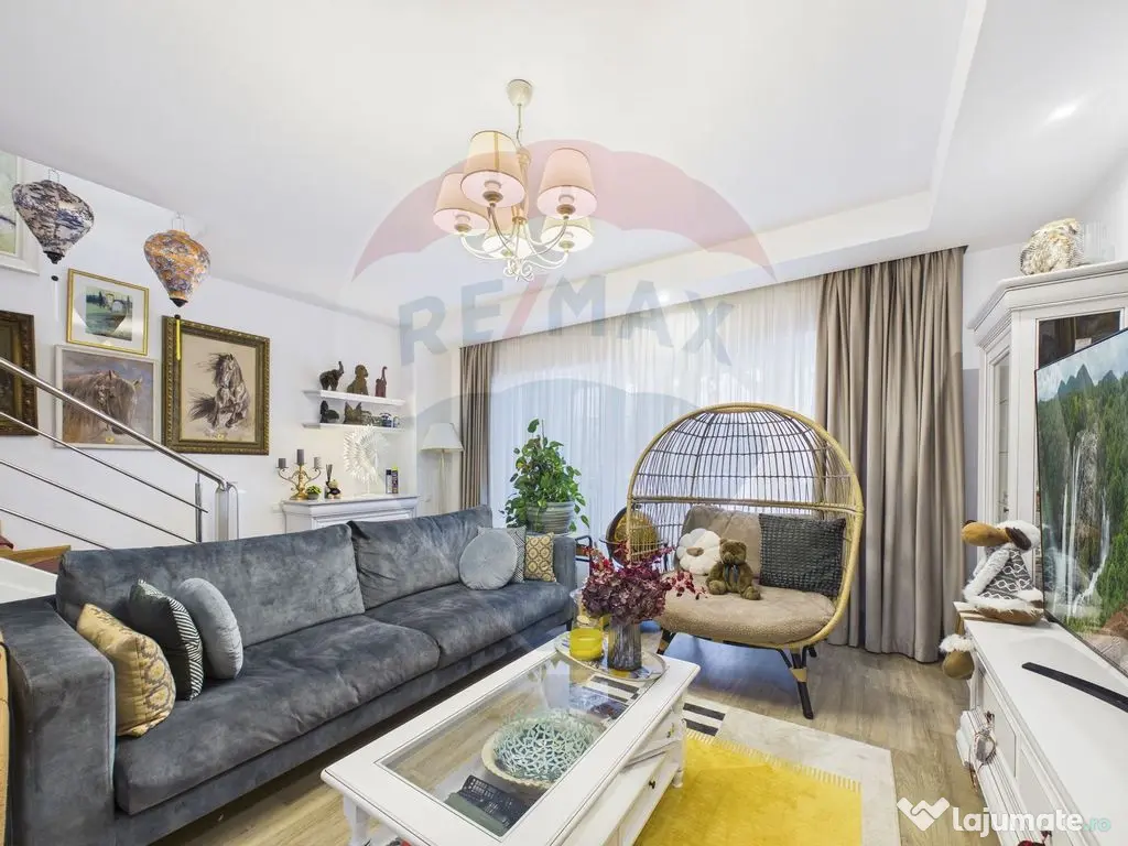 Casă 3 camere cu grădină – Cosmopolis | Mobilată și utilată complet Se oferă spre vânzare casă cochetă situată în Complexul Cosmopolis, ideală pentru un cuplu sau o familie la început de drum. Locuința este mobilată și utilată complet, pregătită pentru mutare imediată, și dispune de o compartimentare practică și luminoasă. Compartimentare: Living generos cu zonă de dining Bucătărie complet echipată 2 dormitoare Baie Grădină proprie de 24 mp, perfectă pentru relaxare, grătar sau spațiu de joacă pentru copii Casa beneficiază de toate facilitățile oferite de complex: pază și securitate, spații verzi, piscine, locuri de joacă, magazine, restaurante și acces facil către București. O proprietate ideală pentru cei care își doresc confort, siguranță și un stil de viață modern. Pentru mai multe detalii sau programarea unei vizionări, vă stăm la dispoziție. Număr niveluri imobil: mai mult de 12 Număr Băi: 2 Posibilitate parcare: Da Nr. locuri parcare: 2 Curent Apă Canalizare Gaz Climă