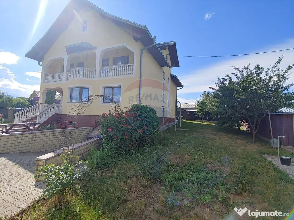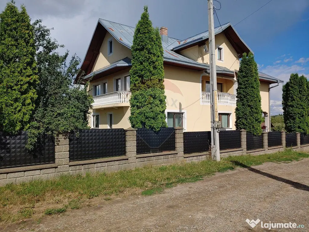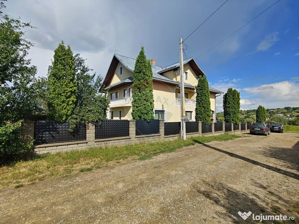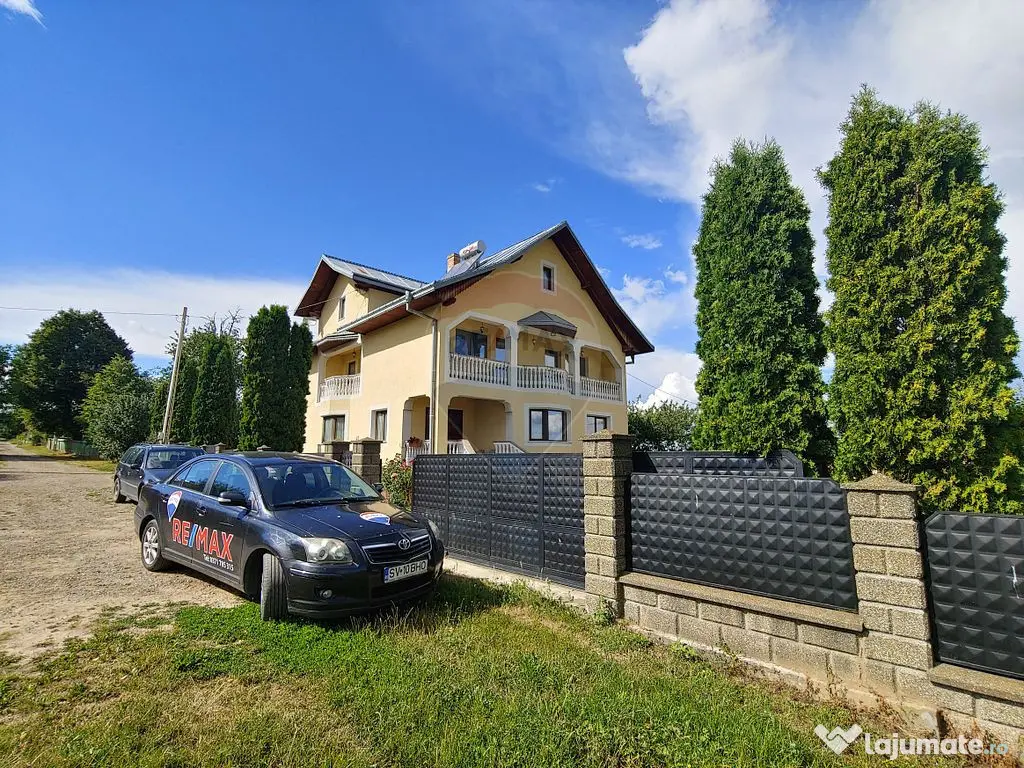 O proprietate deosebită, într-un peisaj natural superb și liniștit la un preț competitiv! Proprietatea cu o suprafață utilă de 267 mp și teren în suprafață de 1200 mp este situată în Zvoristea-Dealu judetul Suceava foarte aproape de primăria din Zvoriștea Casa este structurată astfel: LA DEMISOL găsim un garaj spațios, camera tehnică și casa scării care duce la parterul proprietății. LA PARTER găsim un hol de intrare care duce într-un hol principal cu o suprafață generoasă, bucătăria, sufrageria spațioasă, un dormitor și o baie. Tot la parter în holul principal avem casa scării care duce la etaj și la demisol. LA ETAJ avem un hol generos care ne oferă acces la 4 dormitoare cu ieșire la balcoane, și o baie modern finisată, La două dormitoare există un balcon comun foarte mare, iar celelalte dormitoare au balcon individual. Tot la etaj din holul principal continuă casa scării până în mansarda casei amenajată ca spațiu de depozitare. Acoperisul este din tablă zincată. Încălzirea proprietății se realizează la calorifere de otel. Proprietatea are centrală proprie pe lemne Tâmplăria este din aluminiu cu geam termopan. Ușa de la intrare este din stejar, iar ușile din interior sunt din lemn de brad. Parchetul este din lemn masiv de stejar și fag cu o grosime de 25mm. Pe fiecare nivel este turnată placa de beton cu centură de prindere. Proprietatea are fântână și fosă proprie Frontul stradal este de aproximativ 60 m, instalația electrică este de cupru, contract valabil cu E-ON. Casa este construită pe o structură de beton cu BCA cu lațimea de 40 cm izolate pe exterior cu polistiren de 10 cm și tencuială decorativă acrilică de la STO. Proprietatea se vinde mobilată complet. În fața proprietății sunt 4 locuri de parcare. Proprietatea are două anexe: Anexa 1 : magazie depozitare de 30 mp. Anexa 2 : bucătăria de vara 35 mp. Indicatorii de performanță energetică a imobilului sunt: - clasa energetică: B - consumul anual total specific de energie primară: 70,09 kWh/m2an - indicele de emisii echivalent CO2 anual: 87,87 kgCO2/m2an - consum total specific de energie din surse regenerabile: 0 kWh/m2an Contactează agentul imobiliar pentru informații suplimentare și pentru vizionarea proprietății. Număr niveluri imobil: 1 Număr Băi: 2 Posibilitate parcare: Da Nr. locuri parcare: 4 Curent Apă Canalizare Încălzire Subsol
