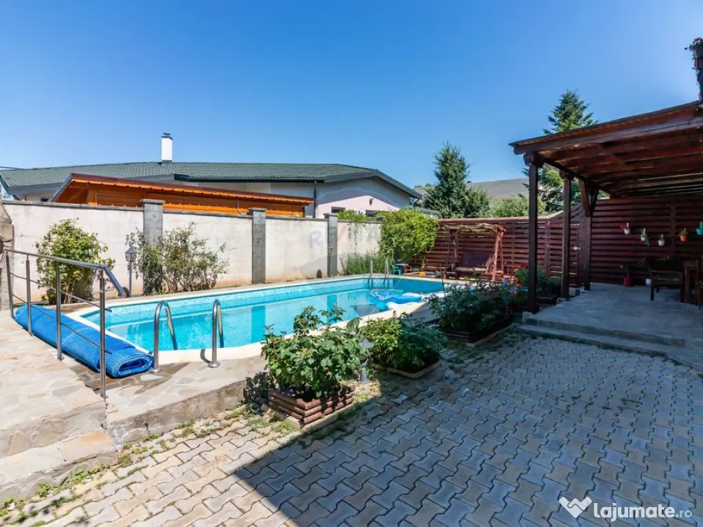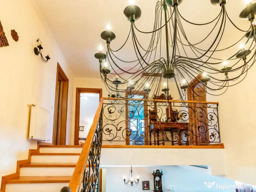 Casa de vanzare in Corbeanca, pe strada Laguna Albastra, langa lac, intr-o zona rezidentiala, cu acces privat din strada principala. Cu o fundatie solida din beton armat si finisaje de inalta calitate in intreaga locuinta, proprietatea este conceputa pentru viata contemporana. Explorati spatiile exterioare cu gradini bine ingrijite, sistem de irigatii, piscina, panouri fotovoltaice, terasa generoasa si multa liniste. Aceasta locuinta nu doar ca dispune de o configurare atenta, ci si de proximitatea fata de diverse facilitati si optiuni de recreere pentru un stil de viata convenabil si vibrant. Compartimentare: -parter: hol de acces, living + zona de dinning, bucatarie, baie, dormitor/birou. -etaj 1: hol de acces, trei dormitoare si doua bai. Dormitorul matrimonial cu baie si dressing proprii. -pod inalt pt depozitare. Detalii tehnice: Structura formata din stalpi si grinzi de beton, caramida portanta, fundatie izolata, casa izolata cu polistiren de 8 cm, acoperis Gerard (tigla metalica acoperita cu roca vulcanica), ferestre Veka, împamântare, paratrasnet, instalatie electrica pe cupru, instalatia de incalzire aparenta si mascata, nu in pardoseala ca sa se poata interveni daca este cazul fara sa se afecteze pardoseala, calorifere curatate in interior cand a fost schimbata centrala, centrala noua, inteligenta in condesatie Ariston 32 kw cu 2 boilere incorporate a cate 20 l, piscina din beton special pt bazine de inot, tencuita si izolata cu materiale speciale so anume ceramica. Pisci a este incalzita si dotata cu schimbator de caldura si centrala termica, totul automatizat. De asemena piscina are si prelata izotermica care incalzeste si mentine temperatura apei, de asemenea dispune si de sistem de recirculare si filtrare a apei automat cu functie de aspirare. Sistem fotovoltaic de 400 kw, prosumator. Curtea dispune de sistem de irigatie automat, porti automate, sistem de alarma conectat la Cyber Security, nu in interiorul casei ci pe garduri cu bariere cu infrarosu astfel incat curtea este protejata (costul este de 136 lei/luna). De asemenea proprietatea beneficieaza si de puț de mare adincime (70 m), care deserveste piscina, casuta mica si irigatia. Terasa, soclul caselor, gardul, treptele exterioare sunt placate cu piatra naturala de râu. Finisaje interioare: usa din metal la intrare, usi din lemn de stejar in toata casa, parchet din bambus, gresie si faianta. Mobila din lemn masiv, elemente unicat. Mobila se poate vinde contra cost. Teren total 431 mp. Casa este racordata la canalizare si are apa de la retea. De asemenea, proprietatea are si puț pt irigatii si piscina. La distanta de 1 minut de mers pe jos, ajungeti la faleza lacului, cu alei de promenada si bancuțe. Supermarket, autobuz, scoala, gradinita la distanta de mers pe jos. DN Value Center, cu magazine si sala de fitness la 3 minute de mers cu masina. Acces rapid in DN, 3 minute de mers cu masina. Pentru mai multe detalii, dar si pentru vizionari, va rog sa ma contactati. Număr niveluri imobil: 1 Număr Băi: 3 Posibilitate parcare: Da Nr. locuri parcare: 3 Curent Apă Canalizare Gaz Sistem irigaţie Încălzire Climă