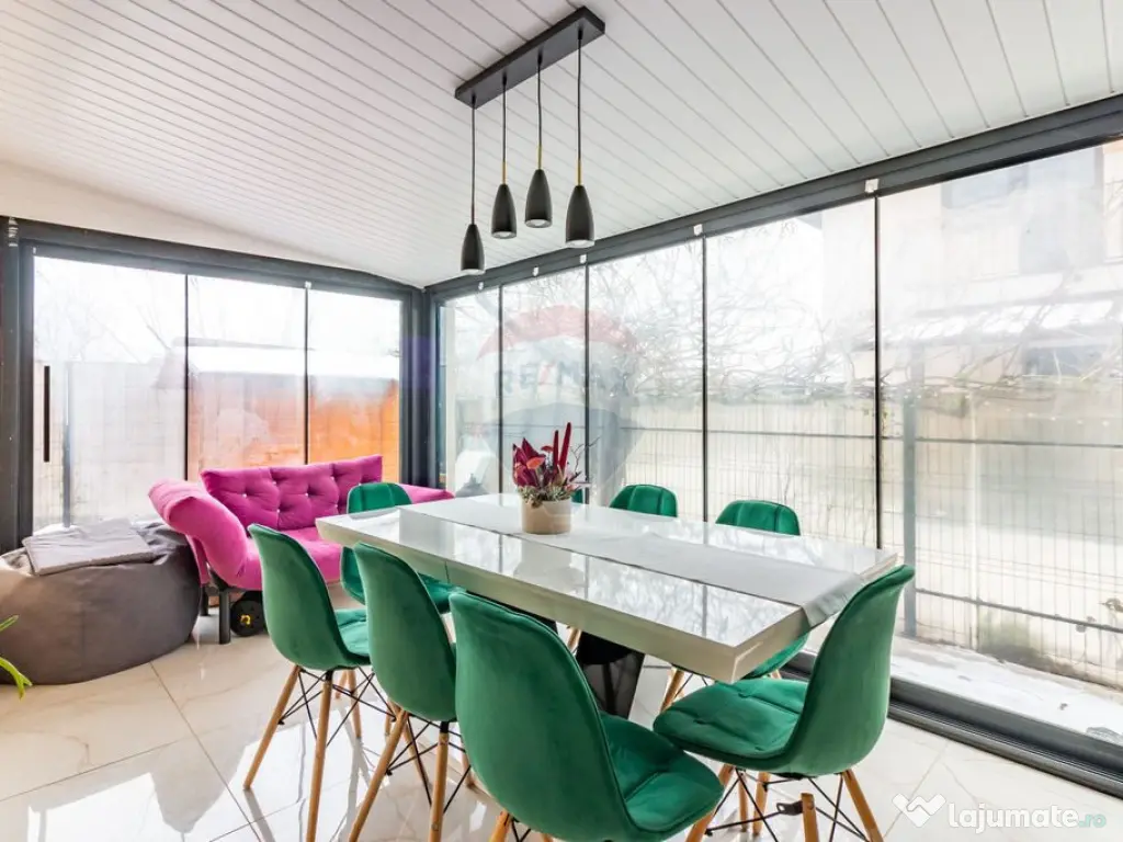 Casa de vanzare in Otopeni, pe strada 1 Mai, intr-un ansamblu rezidential bine construit. Proprietatea este construita in anul 2014, constructie din caramida pe cadre de beton armat, compartimentare interioara din cărămidă, planșeu de beton peste parter, acoperiș din tabla izolat cu vata minerala. Izolatie exterioara din polistiren de 10 cm. Racirea spatiului locativ este realizata de cele 2 unitati de aer conditionat. Usa metalica, geamuri tripan, incalzire cu calorifere, centrala pe gaz. Compartimentare: -parter: hol de acces, living, baie, bucatarie, terasa de 14 mp inchisa cu geamuri din sticla. Una dintre cele mai importante avantaje ale casei este terasa închisă și încălzită, dotată cu încălzire în pardoseală electrică — un spațiu ideal pentru momente de relaxare în orice sezon, perfect pentru living extins, loc de luat masa sau zonă de relaxare. -etaj 1: hol de acces, doua bai si trei dormitoare. Dormitorul matrimonial cu baie proprie. Acces securizat in incinta ansamblului. Scoala, gradinita, parc, statie autobuz, magazine Penny, Mega Image la distanta de mers pe jos. Pentru mai multe detalii, dar si pentru vizionari, va rog sa ma contactati. Număr niveluri imobil: 1 Număr Băi: 3 Posibilitate parcare: Da Nr. locuri parcare: 2 Curent Apă Canalizare Gaz Încălzire Climă