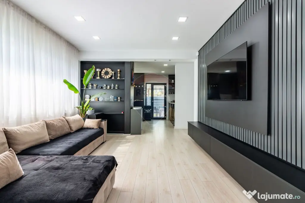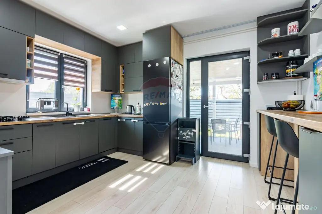 Finisajele casei sunt de înaltă calitate ca și mobila și electrocasnicele, toată aparatura fiind în perfectă stare de funcționare. Spațiile interioare sunt optimizate pentru a oferi fluiditate și multă lumină naturală în fiecare încăpere.
