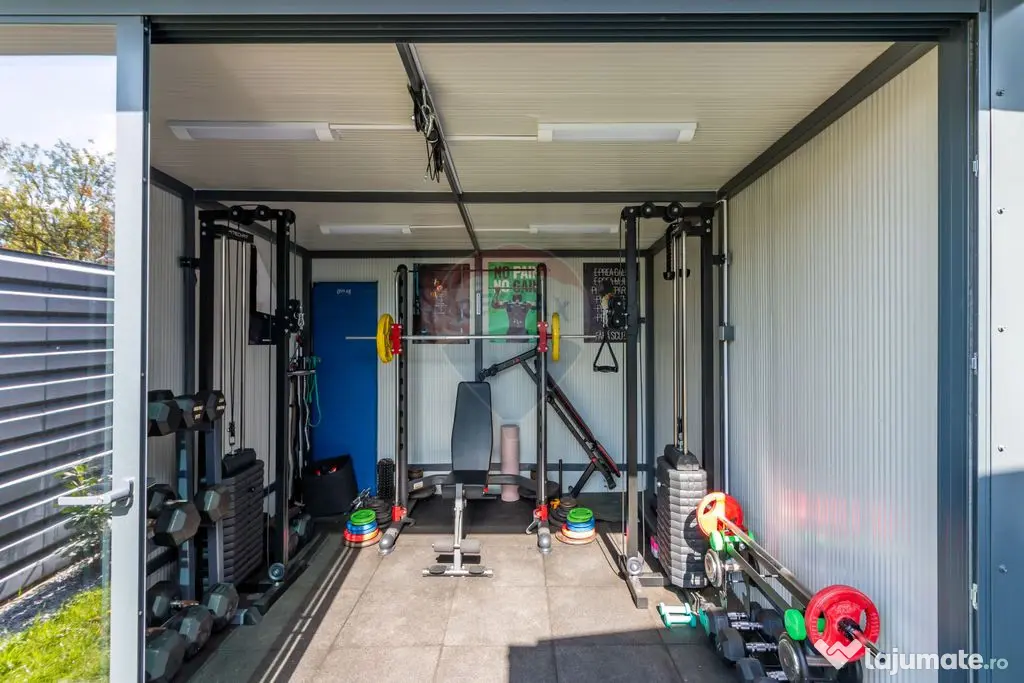 În curte mai este o magazie de 8mp și o sală de fitness de 12mp care poate fi transformată în ce vă doriți dumneavoastră.