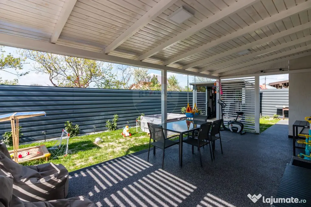 Fiind o casă individuală, te bucuri de intimitate totală, fără pereți comuni cu vecinii.