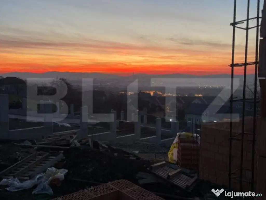 De vânzare casă de 117 mp utili (140 mp construiți) pe un teren de 400 mp, cu o priveliște frumoasă spre oraș. Casa este construită cu materiale de calitate și se vinde la stadiul de semifinisat (140.000 €) sau finisat (170.000 €), la alegerea clientului. Dispune de: 2 dormitoare (dormitorul principal cu baie proprie) birou de 13,8 mp, convertibil în dormitor bucătărie separată living și dining spațios 2 băi, hol generos 2 terase acoperite cu vedere panoramică Casa se afla in faza de constructie, pentru detalii și vizionare, contactați-ne! Cod ofertă / ID BLITZ: P135726 Id intern: P135726 Număr niveluri imobil: 1 Număr Băi: 2 Curent Apă Canalizare Gaz