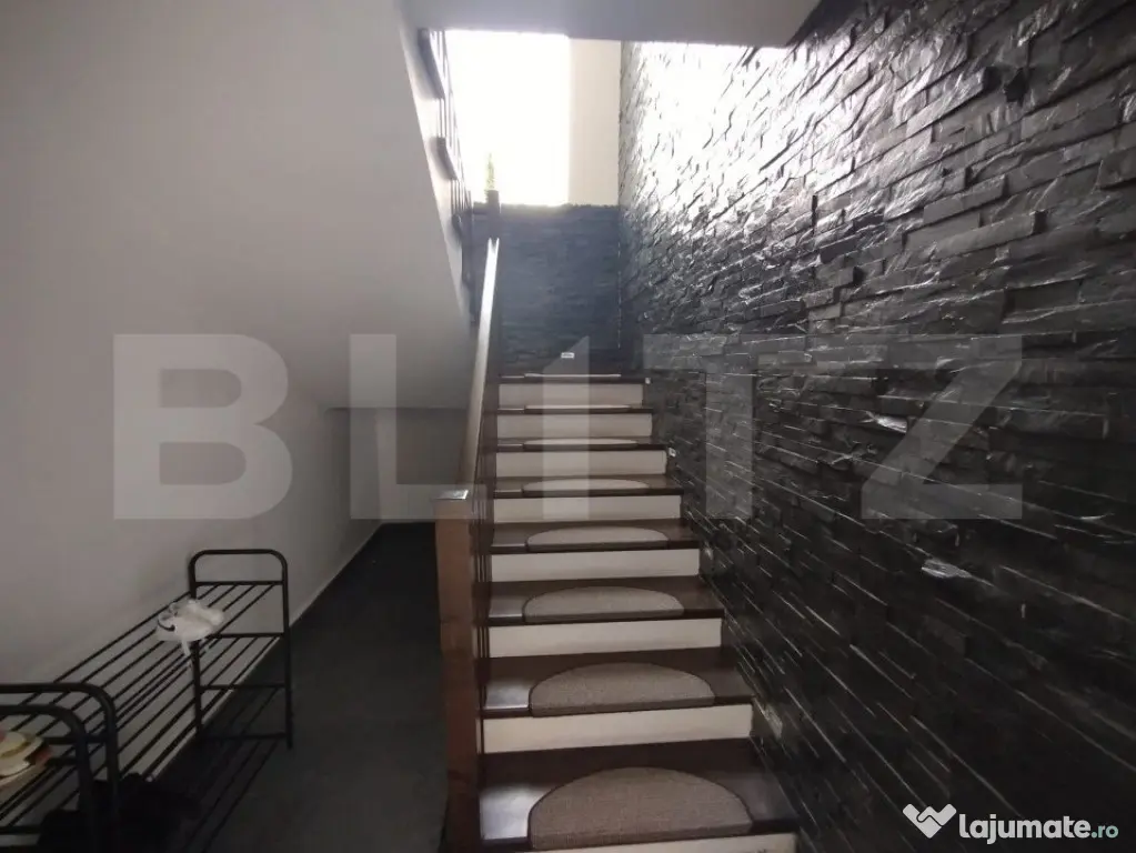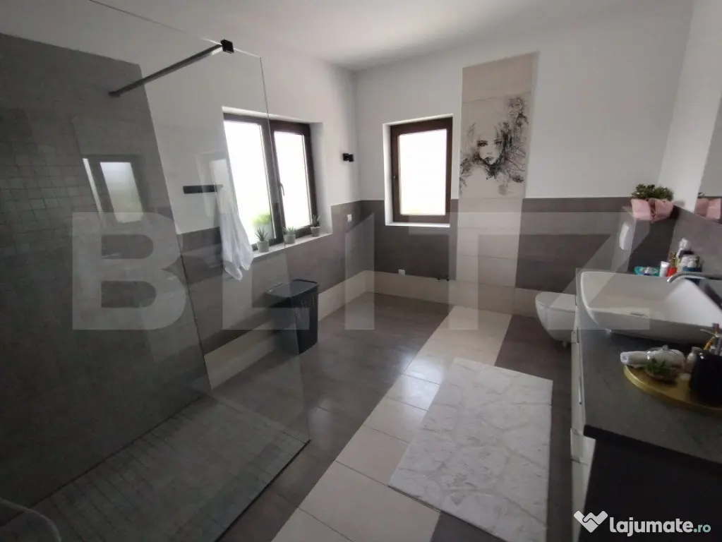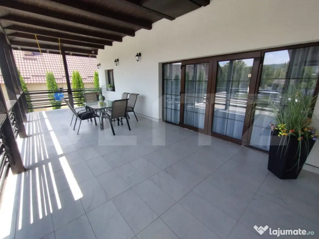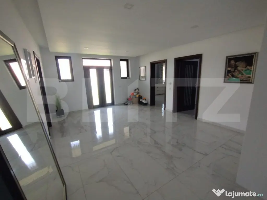 BLITZ va propune spre vânzare o proprietate cu o suprafață utilă de 310mp, amplasată în zona Jelnei municipiului Bistrița. Proprietatea este compusă din 4 camere,2 bai,bucatarie,o terasa generoasa casa scari,la subsol avem 2 garaje,camera tehnica,pivnita,si 2 camere depozitare. Acesta dispune de 2800mp de teren, precum si un lac de pesti in spatele gradini. Proprietatea este complet finisată la interior cu materiale de cea mai inalta calitate și dispune de o centrala termica pe peleti. Accesul in curtea proprietati se face prin intermediul unei porți cu automatizare,si este supravegheata video nonstop. Această proprietate oferă oportunități multiple de închiriere sau pentru activități economice, educative, etc. Pentru mai multe detali si vizionari va stam la dispozitie!! Cod ofertă / ID BLITZ: P127557 Id intern: P127557 Număr Băi: 2 Nr. locuri parcare: 5-10 Curent Apă Canalizare