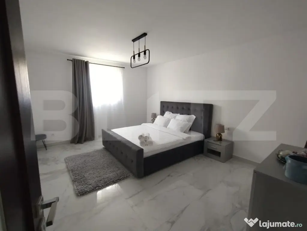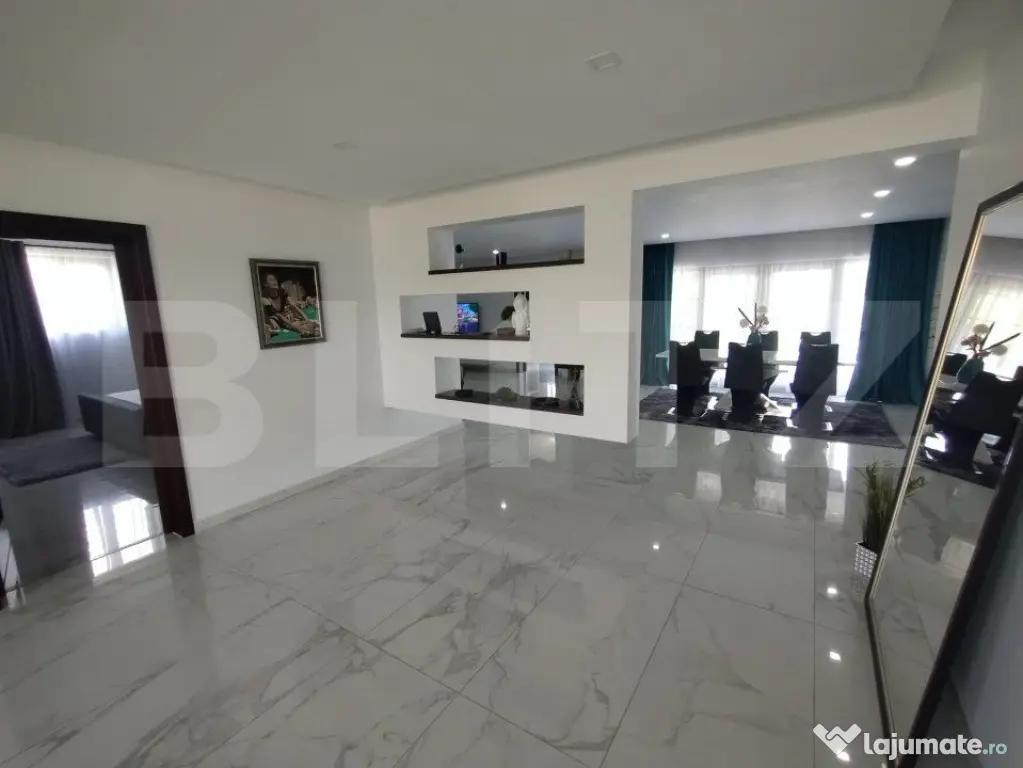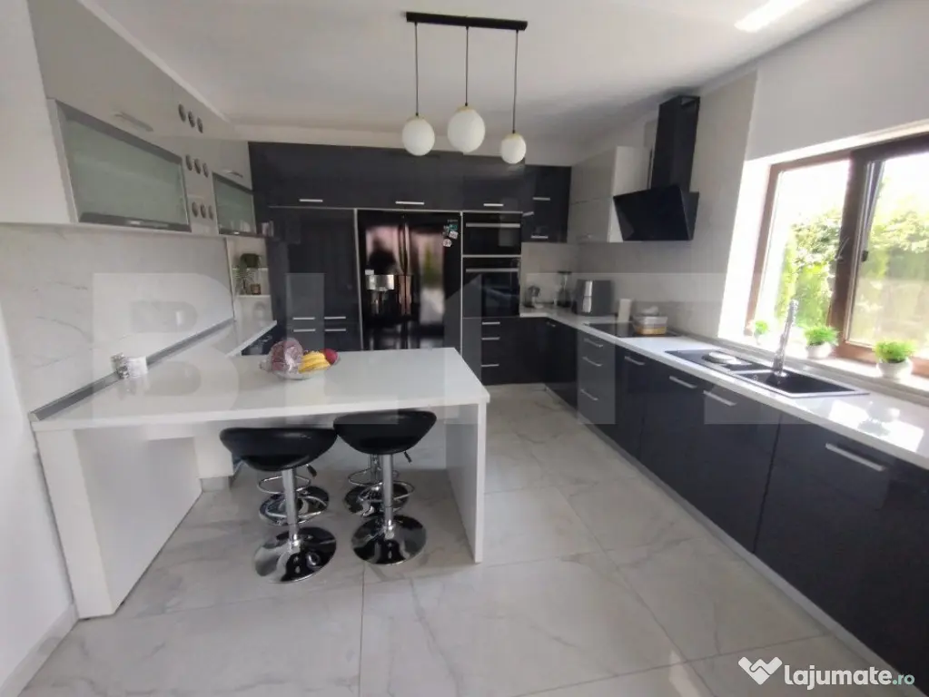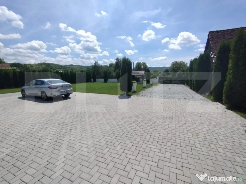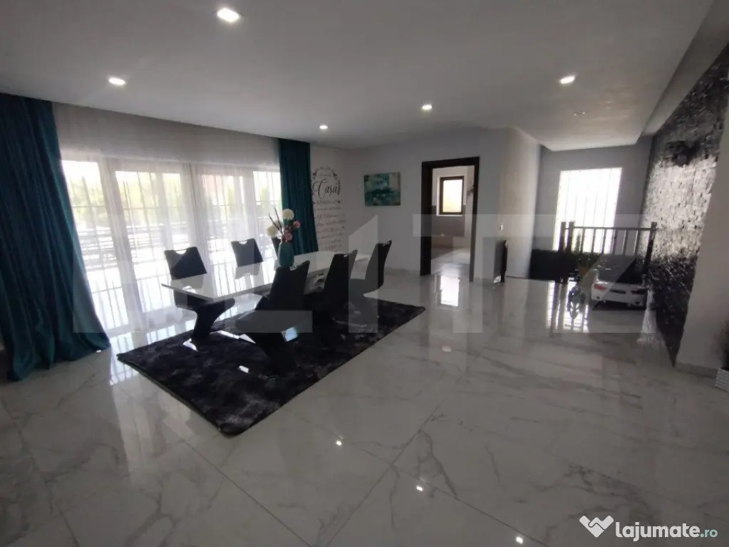 BLITZ va propune spre vânzare o proprietate cu o suprafață utilă de 310mp, amplasată în zona Jelnei municipiului Bistrița. Proprietatea este compusă din 4 camere,2 bai,bucatarie,o terasa generoasa casa scari,la subsol avem 2 garaje,camera tehnica,pivnita,si 2 camere depozitare. Acesta dispune de 2800mp de teren, precum si un lac de pesti in spatele gradini. Proprietatea este complet finisată la interior cu materiale de cea mai inalta calitate și dispune de o centrala termica pe peleti. Accesul in curtea proprietati se face prin intermediul unei porți cu automatizare,si este supravegheata video nonstop. Această proprietate oferă oportunități multiple de închiriere sau pentru activități economice, educative, etc. Pentru mai multe detali si vizionari va stam la dispozitie!! Cod ofertă / ID BLITZ: P127557 Id intern: P127557 Număr Băi: 2 Nr. locuri parcare: 5-10 Curent Apă Canalizare
