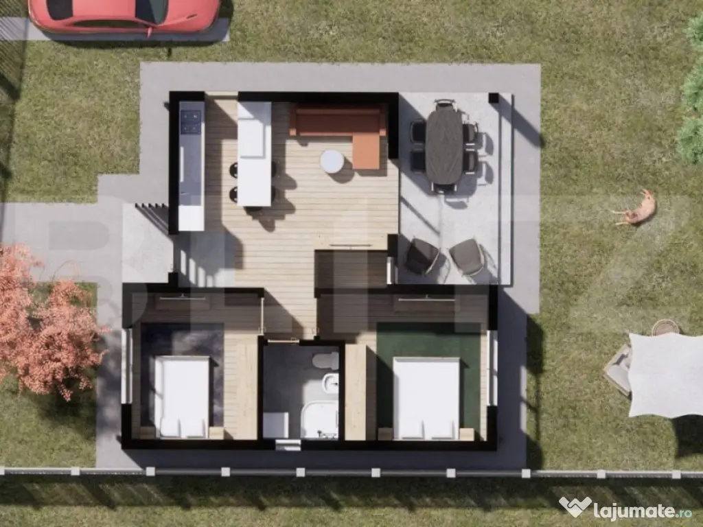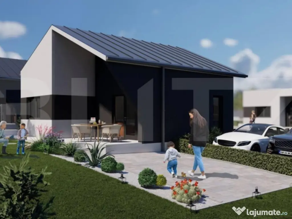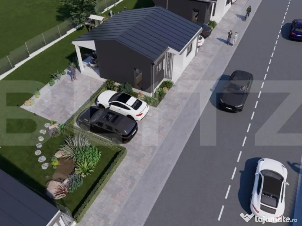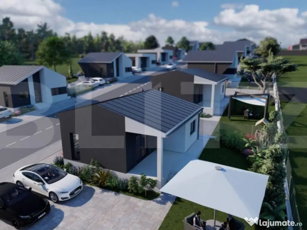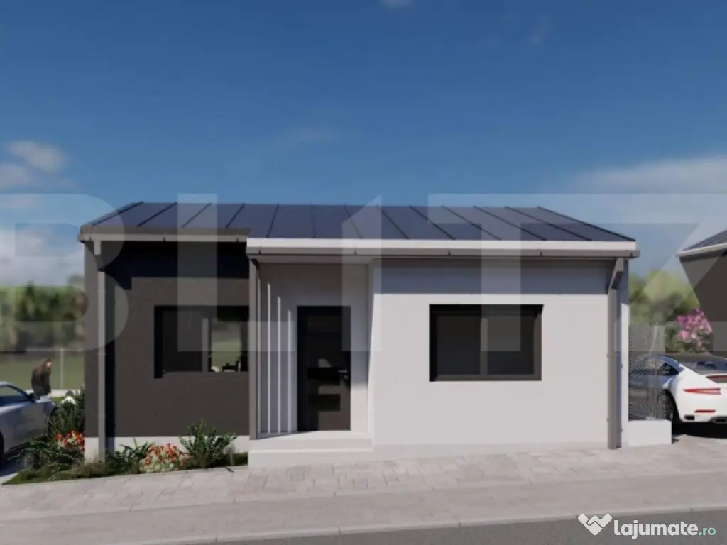 ????Ansamblu de Case cu Structura Metalica in Viile Satu Mare ????Descopera o oportunitate unica de a trai intr-un ansamblu de case moderne, amplasate pitoresc langa padurea din Viile Satu Mare! Va prezentam cu mandrie aceste locuinte cu structura metalica, concepute pentru a oferi confort, siguranta si stil deosebit. ????Localizare ideala: Ansamblul rezidential este inconjurat de natura, fiind amplasat in apropierea frumoasei paduri din Viile Satu Mare. Acest cadru natural va va oferi o atmosfera linistita si o conexiune unica cu natura. ????Caracteristici ale caselor: Suprafata utila de 75mp, ideala pentru un stil de viata modern si functional Spatiosul living, locul perfect pentru relaxare si petrecerea timpului cu familia si prietenii Doua dormitoare primitor, asigurand un somn linistit si odihnitor Dressing pentru organizarea eficienta a garderobei Bucatarie bine echipata, inspirata sa-ti satisfaca toate nevoile culinare Debara pentru depozitarea articolelor si lucrurilor personale Baie moderna si eleganta Hol pentru a asigura un flux armonios in interiorul casei Terasa, unde vei putea savura momente de relaxare si privelisti minunate Finisaje superioare: ????Peretele între stâlpii de metal , este din OSB tratat ignifug , cu rigips în interior și termoizolație exterioara de 15 cm. ????Exteriorul este finisat cu grija, inclusiv tencuiala decorativa siliconata aplicata peste termoizolatie exterioara cu polistiren de 15cm, asigurand o izolatie termica eficienta si un aspect atragator. ????Interiorul este predat semifinisat, gletuit si cu sapa mecanizata elicopterizata, oferindu-ti posibilitatea de a-ti personaliza locuinta dupa preferinte. Termoizolatia cu spuma poliuretanica asigura un climat interior confortabil pe tot parcursul anului. Tamplaria din PVC, cu proprietati izolante si rezistenta in timp, contribuie la eficienta energetica a locuintei. Suplimentar, puteti alege finisaje complete: Daca doriti un pachet complet de finisaje interioare, avem optiuni disponibile la cerere, pentru a transforma casa in caminul perfect, adaptat stilului si preferintelor dumneavoastra. ???? Preturi competitive: Preturile locuintelor variaza intre 79 000 euro si 89.000 euro, in functie de suprafata terenului si de finisajele dorite. Suntem flexibili si deschisi sa discutam posibilitatea de negociere, in functie de modalitatea de plata, termenul si conditiile de predare. ????Garantie pe viata pentru structura de rezistenta: Ne dorim sa va oferim cea mai inalta calitate si sa va asiguram de durabilitatea casei dumneavoastra. De aceea, va oferim garantie pe viata pentru structura de rezistenta a casei. ????Suprafete generoase de teren: Alegeti terenul care vi se potriveste cel mai bine, avem disponibile parcele de 500mp și 375mp pentru a va oferi libertatea de a alege spatiul ideal pentru caminul dumneavoastra. ????Realizati visul de a locui intr-un camin modern si bine pus la punct in inima naturii! Pentru detalii suplimentare si pentru a programa o vizionare, nu ezitati sa ne contactati! Cod ofertă / ID BLITZ: P11658 Id intern: P11658 Număr Băi: 1 Nr. locuri parcare: 2