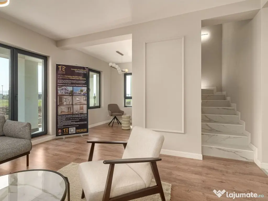 Un nou complex rezidential in portofoliul TRIMBITASU ESTATE! PRETURI DE LA 170.000 -185.000 euro+TVA Un proiect de 32 de case dezvoltat cu responsabilitate de catre ISG Romania, un jucator important in piata imobiliara din Bucuresti Complexul este situat pe str Tiparnitei nr. 105-111, in dreptul Dedeman Giurgiului, Sect 5, in zona cartierului Progresul, Metalurgiei, cu acces facil catre Eroii Revolutiei, Tineretului sau catre DN5 Buc-Giurgiu-Ruse. Pe aceeasi strada Primaria amenajeaza Parcul Sinei Cele 32 de case sunt impartite in 6 loturi cu cate 4 sau 6 unitati insiruite, fiecare beneficiind de curte proprie, loc parcare, drum asfaltat si luminat, loc de joaca, parcare vizitatori, acces securizat bariera Fiecare unitate locativa, mijloc sau colt are aprox 140mp utili, dispusi pe P+1+M. Parter - living, bucatarie inchisa, baie plus debara Etaj- 3 dormitoare si doua bai Mansarda open space sau personalizat Amprenta este de 56 mp la care se adauga gradina aprox 20mp pt casa de mijloc si aprox 70 mp pt casa de colt, plus un loc de parcare Proiectul a fost executat astfel 1.Structural ✔Fundatii grinzi continue de beton la 1,4 metri adancime ✔Sub fundatii un strat de 15 cm de piatra pt rupere capilaritate+ folie hidrofoba (impiedica infiltratiile de apa din pamant in casa) ✔Cadre beton, stalpi si grinzi, iar placile de beton peste parter si etaj 15 cm grosime ✔inchideri perimentrale (exterior si intre case) caramida Porotherm 30cm la care s-au adaugat cate 10 cm de tencuiala pe fiecare parte a zidului (ziduri 50cm grosime) ✔tencuiala are dublu rol, de izolatie si pentru trasarea instalatiei electrice. instalatia electrica s -a tras prin tencuiala ca sa nu se faca santuri prin zidul de caramida si caramida sa isi piarda proprietatile. ✔compartimentarile interioare - placare dubla de rigips si vata minerala de 10 cm 2. Izolatie ✔termosistem de 10cm, densitate 80, ignifugat 3. Acoperis ✔Tabla Bilka de 0,5 garantie 25ani, culoare mata, folie anticondens Tyvek 4. Utilitati ✔Curent trifazic ✔ circuite electrice separate pt consumatori mari ✔sigurante diferentiale pe medii umede (exterior, bai, bucatarie) ✔aparataj modular BTicino ✔instalatii dimensionate pt folosirea mansardei (apa, curent, incalzire) ✔conectate la reteaua orasului de apa si canal ✔bazine retentie de 100m3 cu instalatie separata colectare pt ape pluviale ✔doua pompe plus tocator pt canalizare si bazin separare hidrocarburi ✔incalzire in pardoseala parter ✔centrala termica 24kw ✔calorifere otel etaj 5. Tamplarie PVC antracit Gealan cu geam tripan si manere sescustice si microventilatie 6. Finisaje ✔Usa ext Porta Doors standard eficienta termica NZEB ✔Usi int Porta Doors HDF cu toc reglabil ✔vopsea lavabila Caparol ✔gresie faianta si parchet Delta Studio ✔Vopsea exterioara decorativa Baumit siliconata In pretul afisat mansarda se preda nefinisata dar cu instalatiile trase pt folosirea optima(curent, apa,scurgere). Contracost se poate amenaja open space cu o baie sau personalizat Număr niveluri imobil: 1 Număr Băi: 3 Posibilitate parcare: Da Nr. locuri parcare: 1 Curent Apă Canalizare Gaz Încălzire