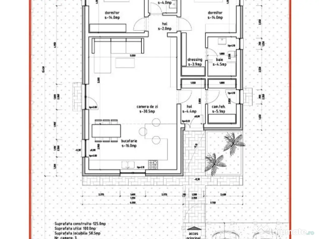 Compartimentare: living, bucatarie, 2 dormitoare, dresing, 2 bai, 2 holuri, camera tehnica