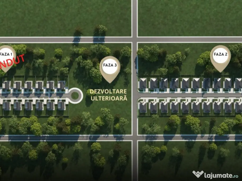 Dupa vanzarea integrala a caselor din Faza 1, va propunem spre vanzare case exclusiv pe parter, in Faza 2 a cartierului privat Domus Residence, situat in Cristian, jud. Brasov, cu priveliste superba spre Muntii Bucegi, Masivul Postavarul si Piatra Craiului!