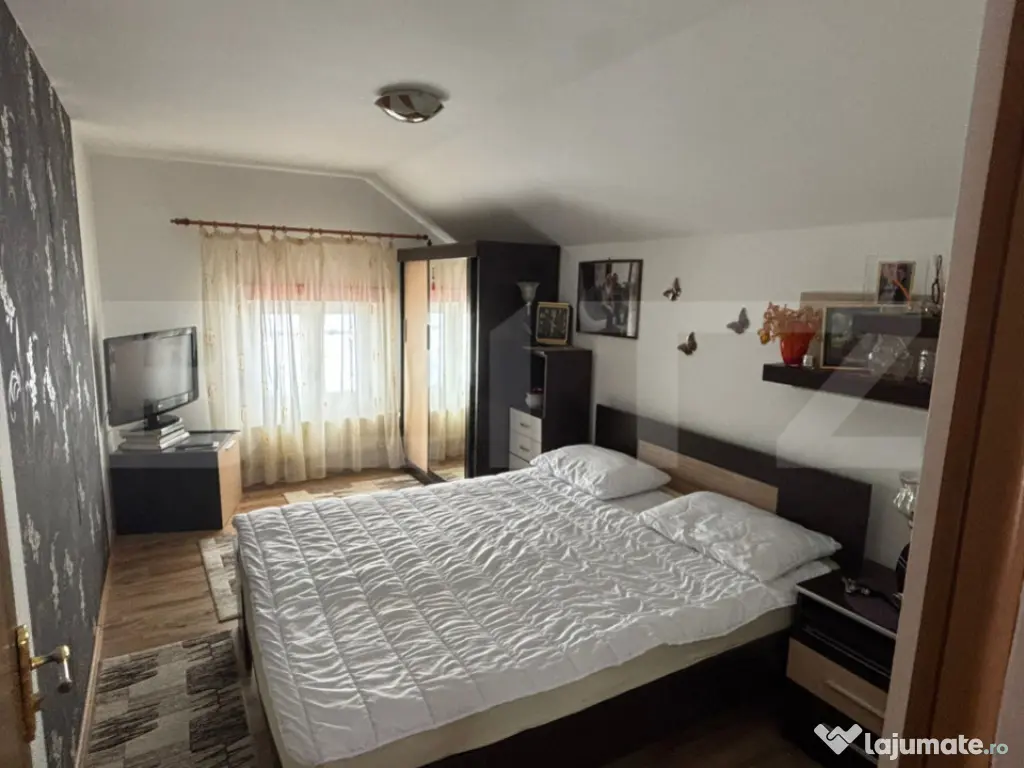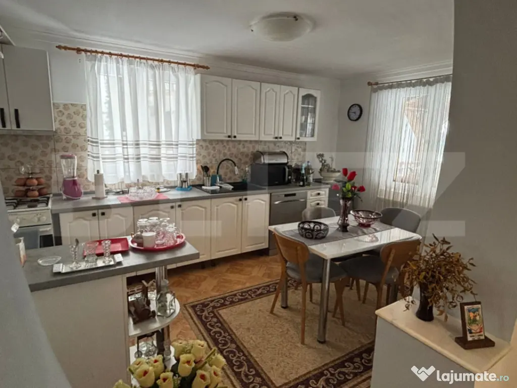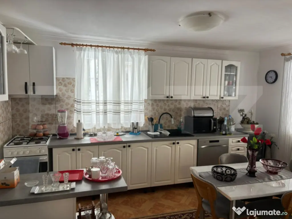 Blitz va ofera spre vanzare o casa chocheta situată într-o zonă foarte frumoasă, liniștită și în plină dezvoltare, lângă Crama Jelna, această proprietate oferă echilibrul ideal între viața la curte și apropierea de oraș. Casa a fost construită în 2009, are 165 mp și este compartimentată eficient: 3 dormitoare living spațios bucătărie 2 băi pod 2 terase acoperite În plus, proprietatea dispune de o anexă complet utilată (căsuță separată), ideală pentru oaspeți sau familie extinsă: dormitor cu dressing baie bucătărie cămară Dotări și facilități: încălzire pe lemne – centrală cu gazificare (gazul urmează să fie introdus) toate utilitățile foișor cu sobă pe lemne garaj pentru 2 mașini magazie, lemnărie fântână proprie livadă cu pomi fructiferi loc de joacă pentru copii: hintă, balansoar, tobogan Suprafață teren: 13 ari ???? Acte în regulă ???? Se acceptă schimb cu apartament (maxim etaj 1) + diferență. Cod ofertă / ID BLITZ: P163991 Id intern: P163991 Număr niveluri imobil: 1 Număr Băi: 3 Curent Apă Canalizare