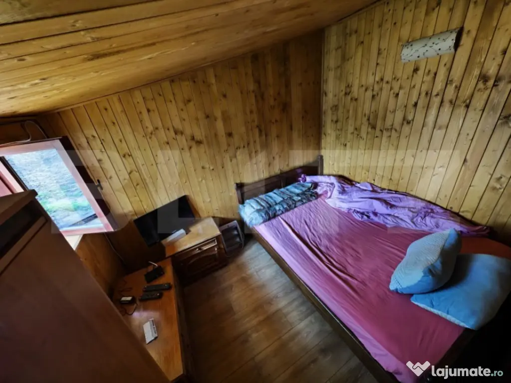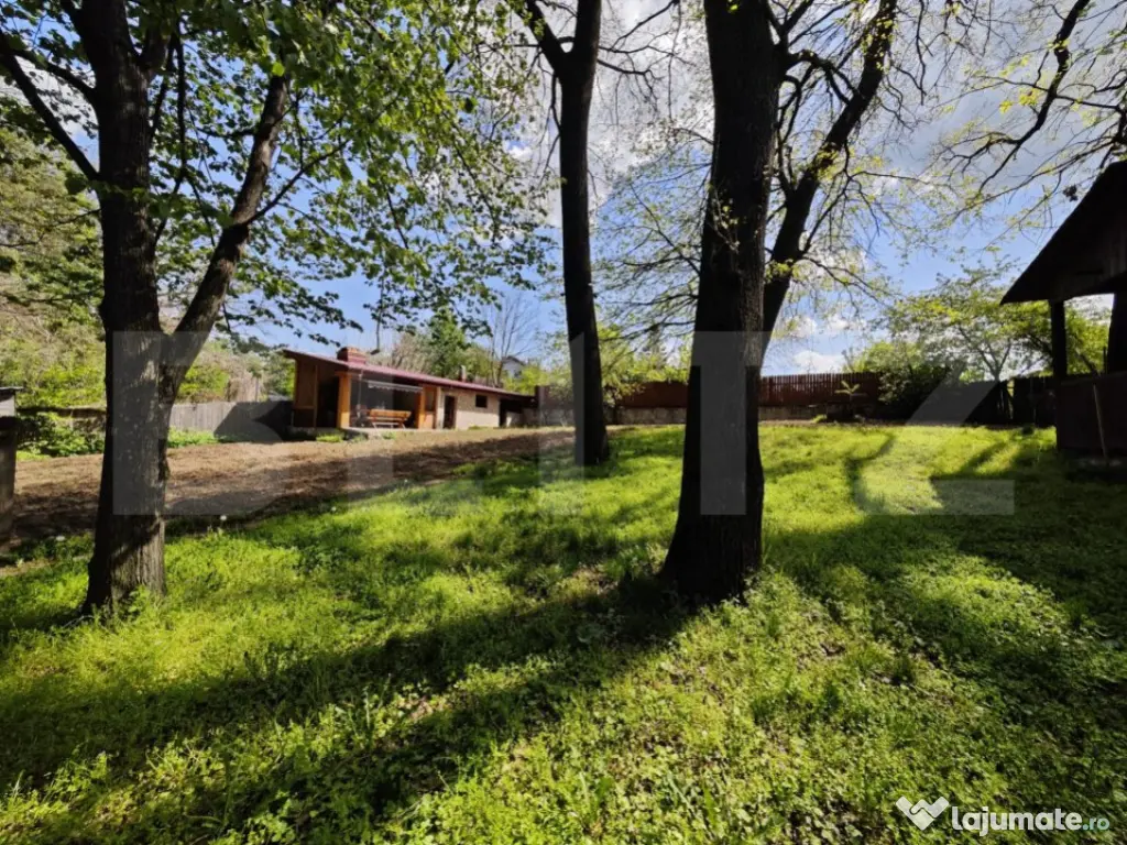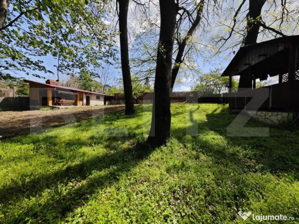 Blitz va propune pentru achizitie o casa de vacanta aflata in padure de stejari. Construcția existentă are o suprafață de aproape 50 mp și este compusă din: bucătărie, dormitor și grup sanitar complet utilate. În prelungirea casei se află o terasă acoperită, amenajată rustic, ce include un spațiu de gătit realizat din cărămidă rustică, cu blat de lucru din marmură, chiuvetă, cuptor, grătar, plită și afumătoare. În curte, lângă stejarii seculari, este amplasat un foișor din lemn, perfect pentru relaxare în mijlocul naturii. Proprietatea este compusa din 2 parcele de teren Prima parcela este de 1800 mp padure si are acces direct la asfalt A doua parcela lipita de prima, de 600 mp buna pentru construit unde se afla casuta de vacanta. Accesul la parcela se face prin parcela de padure conferind intimitate si liniste Proprietatea beneficiază de toate utilitățile: curent electric, apă, gaz, fosă septică și fibră optică pentru TV și internet. Cod ofertă / ID BLITZ: P144339 Id intern: P144339 Număr Băi: 1 Nr. locuri parcare: 1 Curent Apă Canalizare Gaz