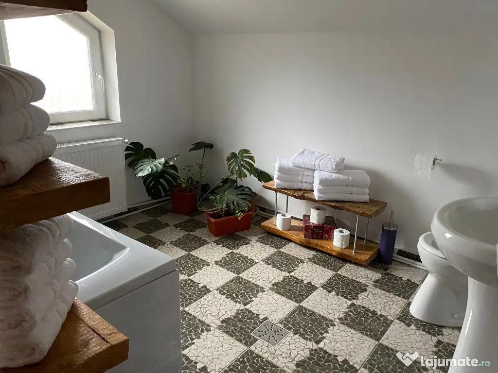 Descopera “Cabana Lostlog”, un refugiu situat in inima naturii, aproape de Vatra Dornei.Creata pentru confort si relaxare, cabana imbina eleganta designului rustic cu facilitati moderne, oferind un spatiu intim, ideal pentru familii sau pentru grupuri de prieteni. Cabana poate gazdui 8 persoane in 3 dormitoare primitoare, living spatios cu televizor smart si sistem audio performant, bucatarie complet utilata, 2 bai si o terasa cu privelisti spectaculoase asupra muntilor, fiecare detaliu fiind gandit pentru o experienta memorabila. Zona de gratar si ceaun, linistea deplina, transforma fiecare sejur intr-o evadare autentica din cotidian. Alege “Cabana Lostlog” pentru momente speciale, aer curat si confort in Bucovina. Pretul este informativ si se calculeaza in functie de numarul de persoane si numarul noptilor de cazare.