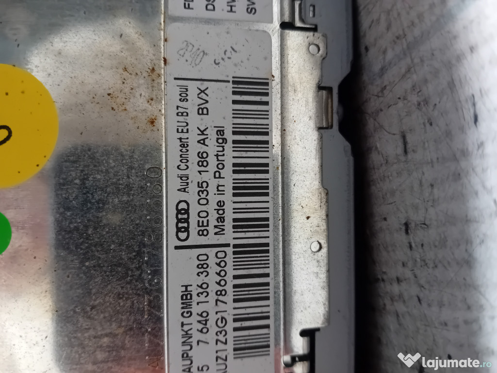 CD Player Audi A4 B7 (cod motor: CABRIO) 2007. Cod(uri): 8E0035186AK. Piesele comercializate sunt originale, provenite din dezmembrari. Dispunem de o gama larga de piese multimarca. Piesele sunt verificate inainte de a fi puse spre vanzare. In caz de neconformitate piesa se poate returna. Va rugam sa verificati disponibilitatea pieselor telefonic. Trimitem in tara prin curier. Marcă: Audi Producător: Audi