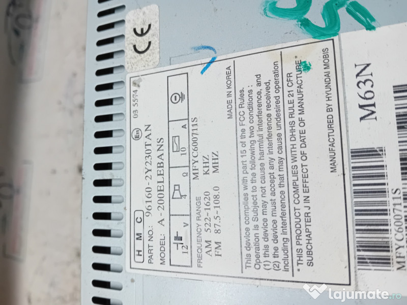 CD Player Hyundai Ix 35 2011. Cod(uri): 961602Y230TAN. Piesele comercializate sunt originale, provenite din dezmembrari. Dispunem de o gama larga de piese multimarca. Piesele sunt verificate inainte de a fi puse spre vanzare. In caz de neconformitate piesa se poate returna. Va rugam sa verificati disponibilitatea pieselor telefonic. Trimitem in tara prin curier. Marcă: Hyundai Producător: Hyundai