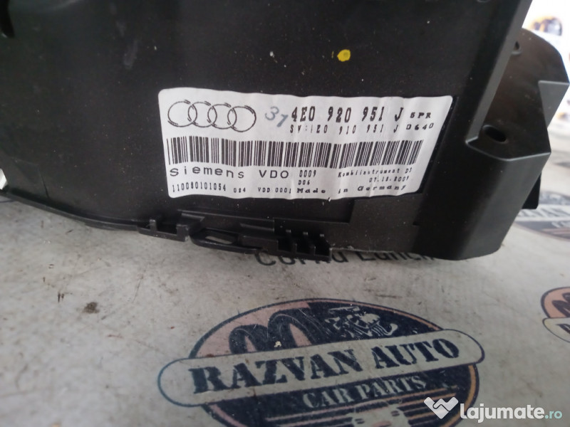 Ceasuri Bord UK Audi A8 Motorina 2009. Cod(uri): 4E0920951J. Piesele comercializate sunt originale, provenite din dezmembrari. Dispunem de o gama larga de piese multimarca. Piesele sunt verificate inainte de a fi puse spre vanzare. In caz de neconformitate piesa se poate returna. Va rugam sa verificati disponibilitatea pieselor telefonic. Trimitem in tara prin curier. Marcă: Audi Producător: Audi