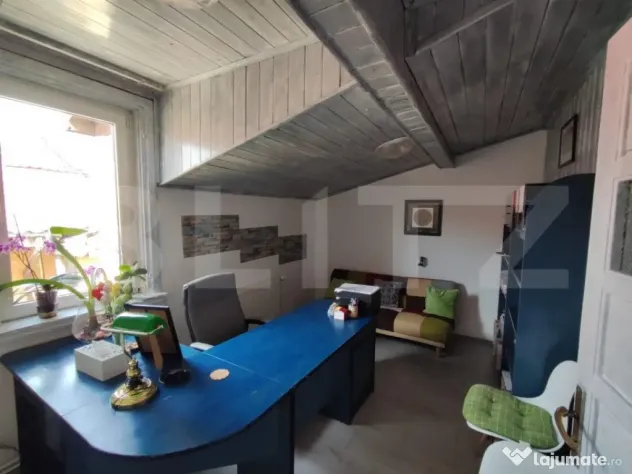 Aceasta este pe doua niveluri aceasta avand parter si mansarda si este compartimentata astfel : parterul dispune de 3 camere din care 2 sunt pentru birou si una pentru arhiva , baie de servici, hol si casa scarii.Al doilea nivel