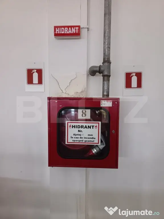 Toate utilitatile prezente , cladirea fiind in norme PSI , detine hidranti in toate punctele de acces si iesiri multiple . Firma anterioara a avut confectii cu peste 300 de angajati !