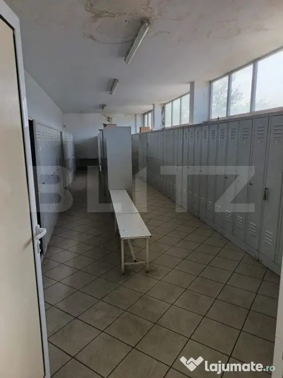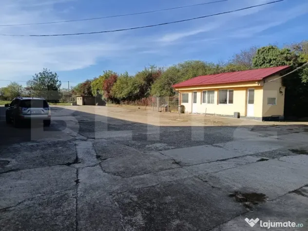 Pe un teren generos de 14774 mp , dispuneti de o cladire de birouri pe 2 etaje , parterul si etaj 1 avand diferite camere , vestiare si grupuri sanitare . La etajul 2 al cladirii se afla un apartament cu 3 camere si 2 bai complet mobilat care isi poate schimba destinatia de asemenea in comercial sau spatii de birouri .