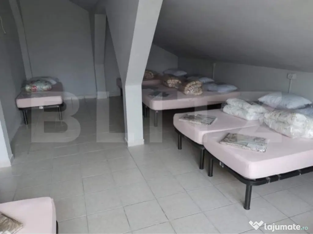 Blitz va propune spre inchiriere o casa pretabila pentru activitati comerciale, situat in apropierea localitati Isalnita, intr-o zona foarte tranzitata, usor accesibil de la drumul european E79. Acesta are o suprafata de 688 mp suprafata construita, dispune de o curte cu suprafata totala de 1557 mp, iar compartimentarea este realizata astfel: parter 466 mp, 5 camere cu o dimensiune de 16 mp, pentru fiecare camera, 3 intrari din exterior, plus o alta intrare din casa scarii, spatiu deschis 100 mp(living), bucatarie 30 mp, camere pentru grupuri sanitare, 2 camere tehnice, plus holuri, etajul 1: 6 camere(dintre care 2 camere duble), o bucatarie foarte spatioasa, 2 grupuri sanitare, 2 cabine de dus.Spatiul dispune si de alte facilitati precum vitrina, aer conditionat pentru camerele de la etajul 1, utilitati separate, acces tir din strada. Statia de tramvai se afla in fata spatiului. Este ideal pentru orice activitate comerciala de tip pensiune, azil de batrani, productie dar si alte tipuri de activitati comerciale. Pentru mai multe detalii, va asteptam cu drag la vizionare! Cod ofertă / ID BLITZ: P97733 Id intern: P97733 Stadiu construcţie: Finalizat Nr. locuri parcare: 4 Tip imobil: Bloc de apartamente