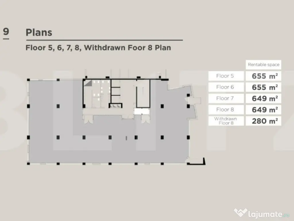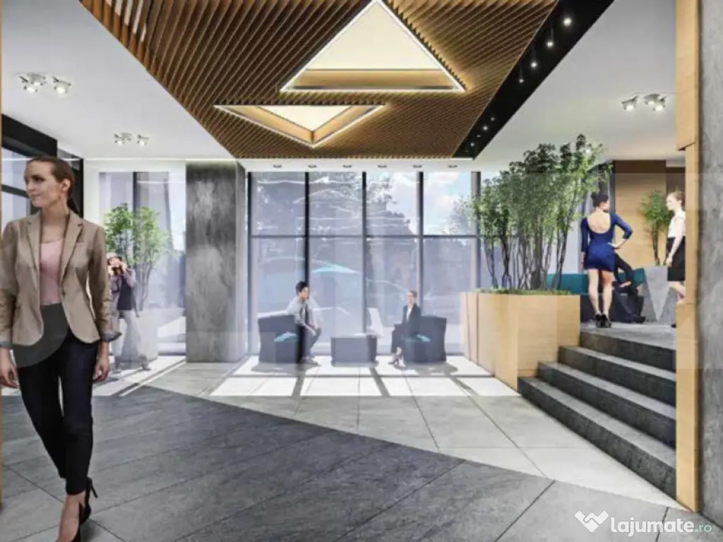 Centrul de afaceri , clădire nouă, construită pentru a atrage forța de muncă creativă și inovatoare. Situata în cartierul de afaceri cel mai râvnit din Cluj Napoca, clădirea oferă acces la hotspoturile de retail și de ospitalitate ale orașului, precum și la toate rutele principale și sistemele de transport local. Este foarte aproape de cafenele, baruri, restaurante, magazine, săli de sport, cinema, teren de sport și lac, făcându-l ideal pentru echilibrul vieții oricarei persoane. Are legături imbatabile cu centrul orașului, aeroport, autostradă și transport public. Cu un design elegant exterior, acesta combină un stil elegant și o tehnologie avansată. Astfel cladirea ofera : • recepție • parcare cu valet în zona de parcare din garaj curte interioară verde spații comerciale • sala de sedinte Este desfasurata pe Parter + 8 etaje + parcare subterana. Are un total de 8800 mp utili , inclusiv terase și logii cu o suprafata utila de 6600 de mp si 74 de locuri de parcare subterane. Detalii tehnice • Alarma de incendiu automată • Serviciu de securitate 24 de ore • Podea ridicată • ferestre generoase • Parcare in garaj Instalatii tehnice de ultima generatie • Podele crescute • Plafonul expus Sistem optim de aer condiționat Capacitate electrică de rezervă • Siguranța în caz de incendiu • Standarde înalte de siguranță (Acces prin card, supraveghere video) Rețele și evenimente Împreună cu serviciile noastre de magazin, situate la același etaj, ele fac un excelent centru de rețea pentru clienții interni și pentru oaspeții lor. Managementul proprietatii: Echipa de management profesională și experimentată va rămâne la dispoziția clienților, oferind consultanță și servicii administrative. Ei vor gestiona serviciile, relația cu administrația locală, furnizorii de utilități și întreținerea clădirilor. Imobilul va fi certificat Breeam, adica clădire ecologică cu costuri unice. Prin implementarea certificării, BREEAM demonstrează că clădirea este dezvoltată durabil, îmbunătățește bunăstarea persoanelor care trăiesc și muncesc, contribuind la protejarea resurselor naturale. Sisteme de construcție Construit recent 2017; oțel beton; SUCHO ferestre cu sistem automat de umbrire pe fațada SV, beton, acoperire decorativă, zone cu fațadă ventilată; tavan expus (beton cu tencuire), înălțimi de la 2,9 m în zonă până la 4 m în hol LED, piese de iluminat suspendate, 500 lux în zonele de lucru (conform standardelor BOMA) tensiune 220 V (opțional 380 V), tensiune intermediară (medie tensiune) Sistem integrat de înaltă performanță HVAC Denco - sistem de răcire (răcire, încălzire, aer proaspăt) - sistem de climatizare sub pardoseală (Technicalspecsattached) 2 furnizori de telecomunicații de înaltă calitate (TBA) 2 trafo x 640 KVA, 1 sistem independent de generatoare pentru backup standard de urgență Conform legislației românești: detectoare de fum în toate încăperile, hidranți interiori și exteriori, alarme de incendiu; Taxa opțională suplimentară: putem furniza sprinklere în zone (TBA) Sistem avansat de administrare și monitorizare a clădirii, incluzând următoarele sisteme: HVAC, trăsnet, ferestre externe, măsurători de utilități, Sistem de incendiu Confort termic / facilități Confort termic (sistem HVAC) Parcare și acces - sisteme de securitate moderne și control acces (CCTV la intrare și parcare) - controlul accesului (recunoașterea numărului) cu bariere în parcare - controlul accesului pe fiecare ușă de intrare în clădire (controlul accesului pentru ușile de intrare ale Locatarului va fi asigurat de către Locator) - controlul turnichetelor înainte de accesul liftului în zona de lobby - parcare cu valet și securitate 24/24 - recepție - 8 ore / 5 zile / săptămână 3 ascensoare Schindler, fiecare pentru 9 persoane; toate lifturile sunt potrivite pentru accesul persoanelor cu handicap. Podea înălțată (30 cm înălțime), fără covor, plăci ceramice în spații comune; Toalete pentru fiecare spațiu închiriat, standard echipat complet, toaletă pentru persoane cu handicap ; taxă opțională: bucătărie mică la solicitarea locatarului (TBA) 79 de locuri de parcare Rafturi pentru biciclete - Parcare cu incarcare pentru masini electrice Foarte convenabil vehicul și acces public, la 2 minute de stația de autobuz, la 5 minute de mers pe jos de Iulius Mall. Cod ofertă / ID BLITZ: P3415 Id intern: P3415 Stadiu construcţie: Finalizat Clasă birouri: A Nr. locuri parcare: 10-20 Tip imobil: Bloc de apartamente