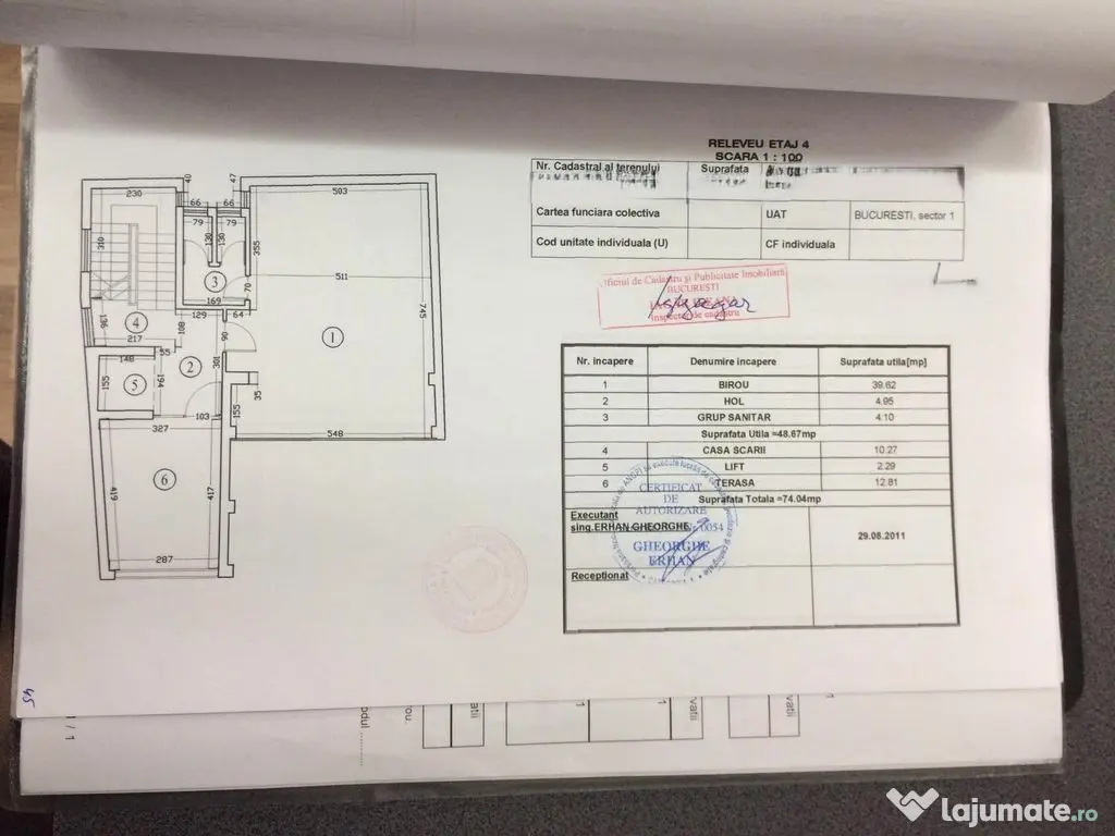 Cladire de birouri de vanzare in zona Dorobanti S+P+5+6, suprafata construita 940mp, utila 800mp open space parcare subterana 4 locuri si exterior 2 locuri. Pret 3000000 euro, fara TVA , persoana fizica. Cladirea este inchiriata cu 9000 euro/luna, contractul se renegociaza in 2025.