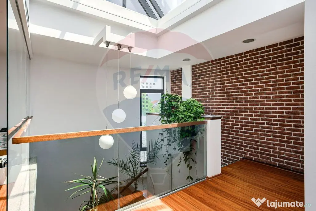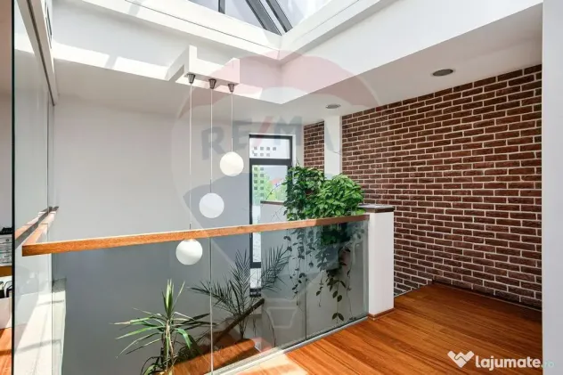 - Fațadă integrală din sticlă – lumină naturală excelentă