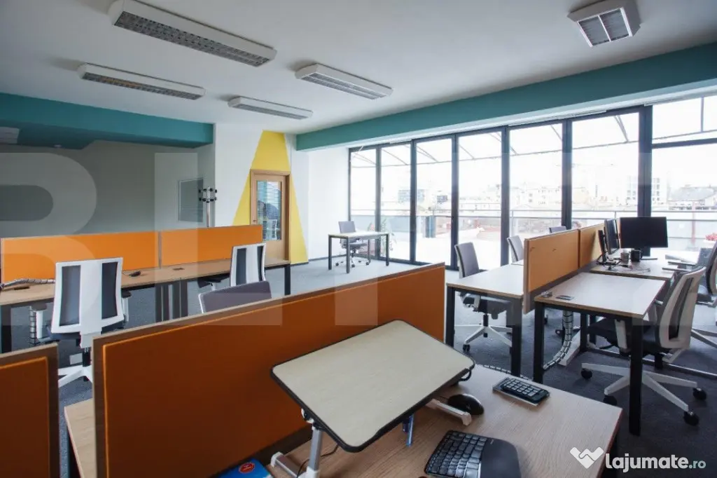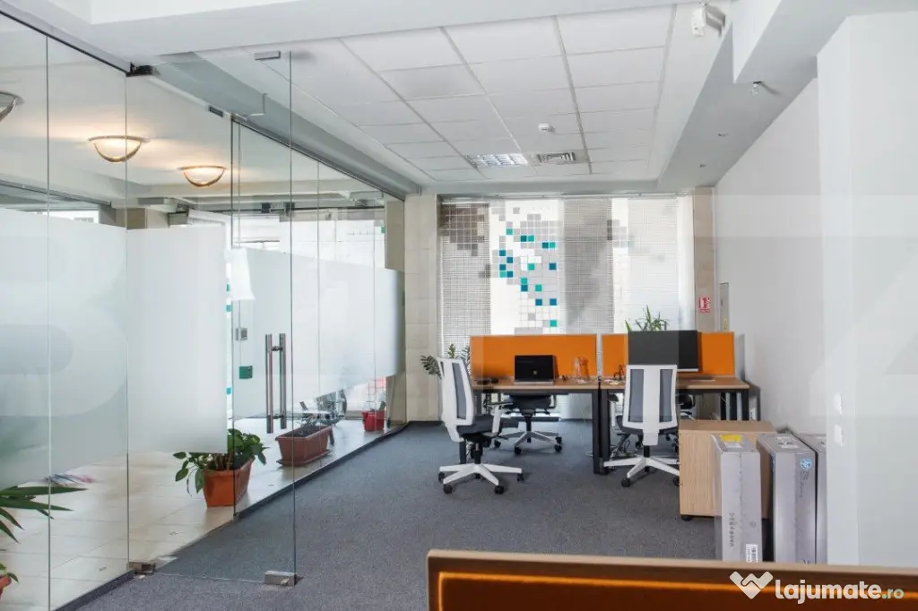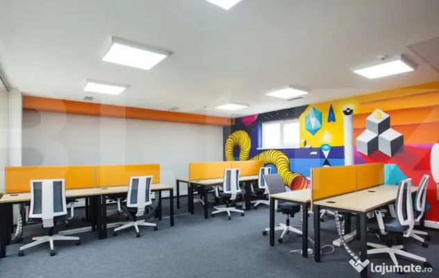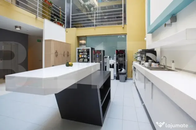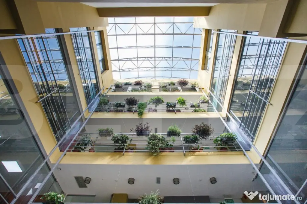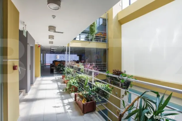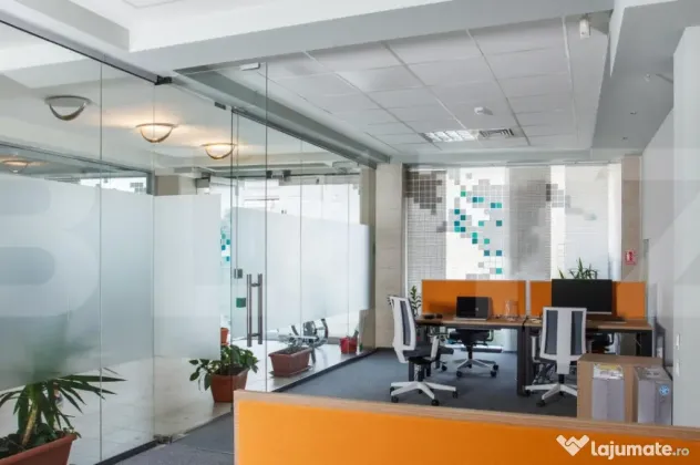 Cladire desfasurata pe S+P+4 in zona ultrancetrala, cu spatii de tip open space si compartimentari diferite pe fiecare etaj in parte cu o suprafata utila de 1450 de mp.. Cladirea dispune de spatii ample de receptie, loc de luat masa, zona recreere, sali de conferinte, lift, grupuri sanitare moderne si terasa exterioara pentru recreere ( barbeque) . Dispune de toata infrastructura IT necesara unei cladiri de birouri si corpuri de iluminat tip led.