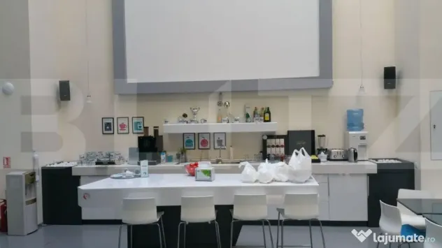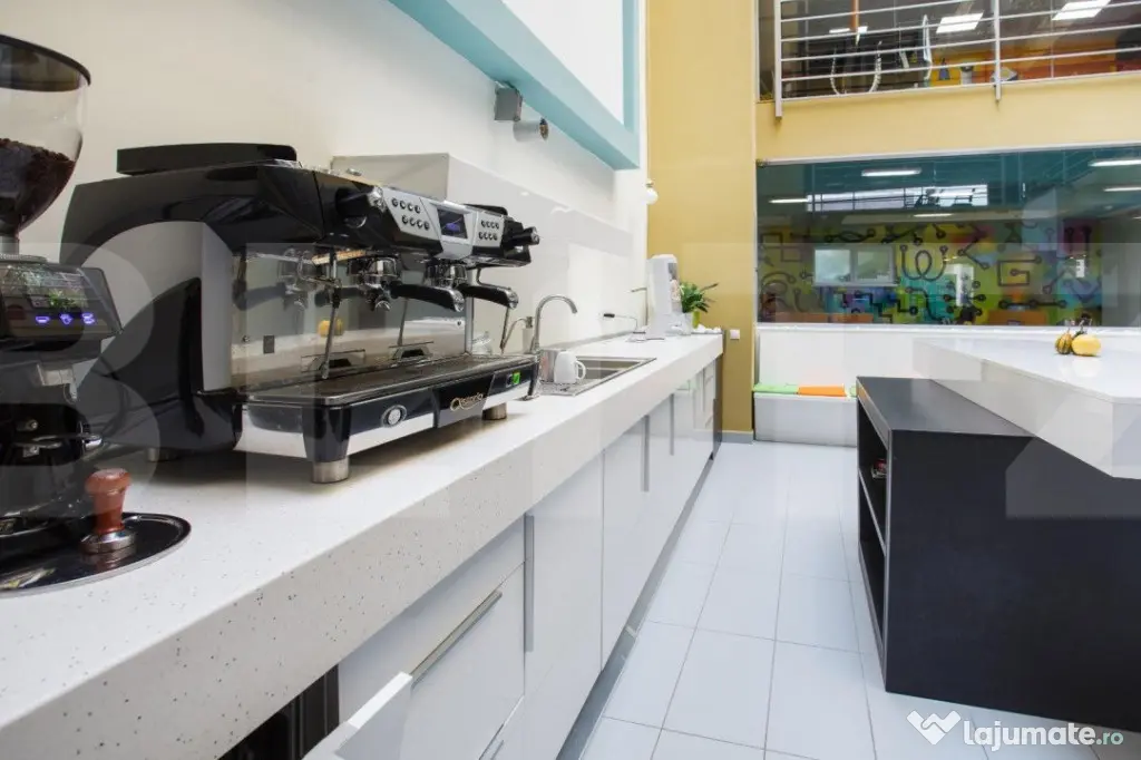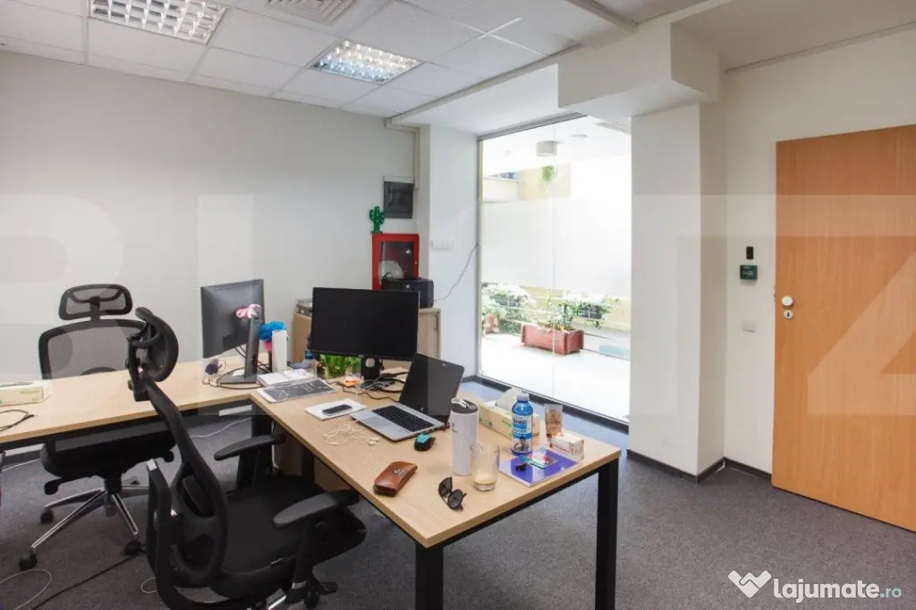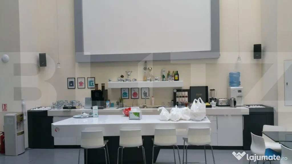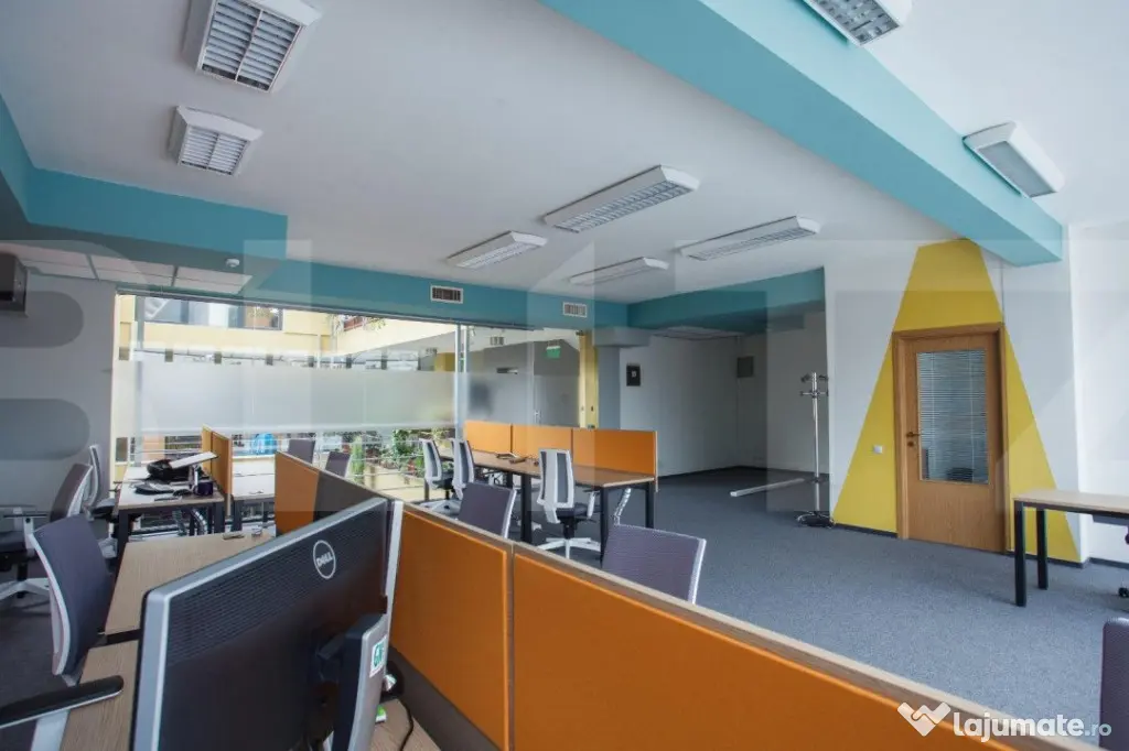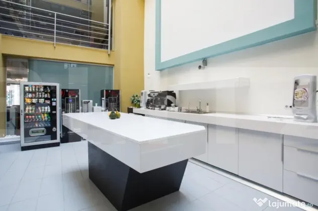 Cladire desfasurata pe S+P+4 in zona ultrancetrala, cu spatii de tip open space si compartimentari diferite pe fiecare etaj in parte cu o suprafata utila de 1450 de mp.. Cladirea dispune de spatii ample de receptie, loc de luat masa, zona recreere, sali de conferinte, lift, grupuri sanitare moderne si terasa exterioara pentru recreere ( barbeque) . Dispune de toata infrastructura IT necesara unei cladiri de birouri si corpuri de iluminat tip led.