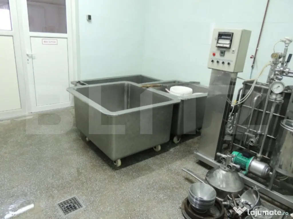 BLITZ vă propune spre vânzare o cladire (fosta fabrică de lapte) care produce și procesează lapte și produse lactate. Această fabrică are echipamente specializate pentru colectarea laptelui de la fermele locale. Fabrica de lapte include facilități de depozitare a laptelui, instalații de pasteurizare și sterilizare, linii de producție pentru diverse produse lactate, facilități de ambalare și etichetare, precum și facilități de distribuție. De asemenea fabrica respecta standarde stricte de igienă și siguranță alimentară pentru a asigura calitatea produselor lactate. Aceasta are toate facilitățile necesare, inclusiv birouri, vestiare, baie, dușuri și echipamente adecvate. Fiind situată la doar 50 km de orașul Bistrița, aceasta ar putea fi adaptată cu ușurință pentru a susține diverse industrii, cum ar fi producția de sucuri, produse cosmetice sau chiar suplimente alimentare. Datorită infrastructurii deja existente, această locație ar putea fi foarte utilă pentru diversificarea activităților economice din zonă. Pentru mai multe detalii și pentru vizionări, nu ezitați să ne contactați! Cod ofertă / ID BLITZ: P129497 Id intern: P129497 Suprafaţă totală: 600 m² Suprafaţă birouri: 2 m² An finalizare construcție: 2011 Stadiu construcţie: Finalizat Tip imobil: Alte tipuri