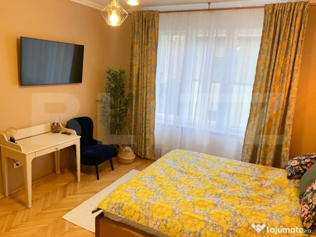 Blitz va prezinta in centrul istoric al Timișoarei, într-o zonă ultracentrală unde orașul pulsează constant, un apartament care îmbină autenticitatea locului cu confortul contemporan. Situat la etajul al doilea al unei clădiri cu regim P+2E+M, recent renovată în proporție de 90%, imobilul oferă o perspectivă privilegiată asupra vieții urbane: toate ferestrele dau spre zona pietonală, inundând încăperile cu lumină naturală și energie. Apartamentul are o structură bine gândită: 3 camere și o terasă amplasată în curtea interioară, oferind un echilibru ideal între dinamismul centrului și intimitatea proprie. Spațiul este împărțit în două unități distincte, ambele complet mobilate și utilate: -Prima unitate este un apartament cu două camere. Livingul și dormitorul se bucură de vedere directă către pietonală, iar holul generos asigură un flux firesc între zone. O chicinetă discretă, o baie de serviciu și o baie modernă cu duș walk-in oferă confortul necesar pentru o locuire practică și elegantă. Din această zonă se face accesul către o terasă liniștită, amplasată în curtea interioară, perfectă pentru momente de relaxare departe de agitația centrului. -A doua unitate este un studio compact, cu baie proprie și vedere către pietonală, ideală pentru închiriere în regim hotelier sau pentru oaspeți. Localizarea ultracentrală aduce avantajele esențiale: acces rapid la principalele atracții, restaurante, cafenele și zone culturale, plus o priveliște constantă către una dintre cele mai frumoase artere pietonale ale orașului. Clădirea renovată și compartimentarea inteligentă fac din acest apartament o alegere potrivită atât pentru rezidență elegantă, cât și pentru investiție sigură. Ambele unități sunt acreditate pentru regim hotelier, oferind flexibilitatea de a combina locuirea cu o activitate profitabilă, într-o zonă cu cerere constantă. Acesta nu este doar un apartament într-un punct central al Timișoarei — este un spațiu versatil, luminos și valoros, pregătit să devină locuință, investiție sau ambele. Va asteptam la o vizionare! Cod ofertă / ID BLITZ: P155382 Id intern: P155382 Confort: 1 Tip imobil: Bloc de apartamente Număr Băi: 3
