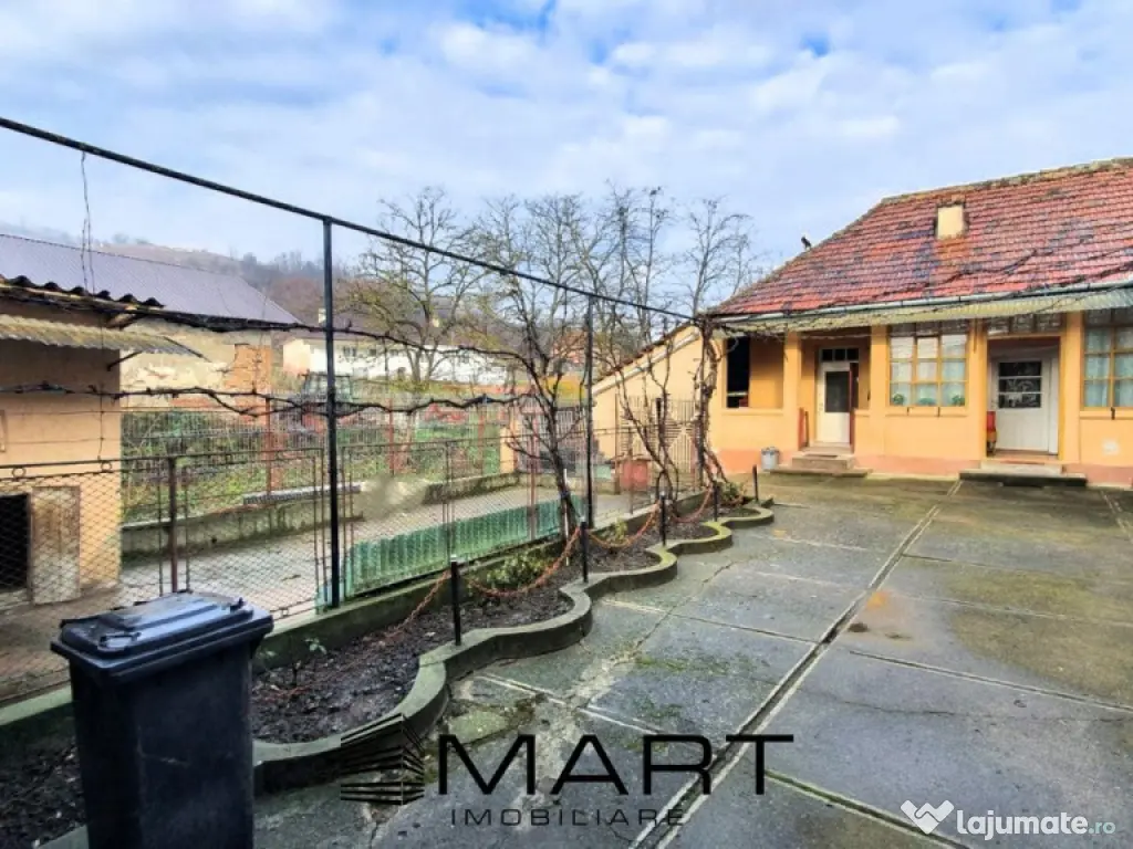 Smart Imobiliare vinde cladire situata in localitatea Smig, aproape de Medias. Cladirea a functionat ca spatiu productie preparate alimentare, dar este pretabila pentru orice domeniu de activitate sau pentru locuit. Terenul este de 738, iar curtea ramasa libera este de aproximativ 300 mp. Cladirea are deschidere la drumul de 30m, iar deschiderea terenului este de aproximativ 50m. Imobilul se afla in zona centrala a localitatii, fiind incadrata de scoala, primarie si biserici. Cladirea dispune de pivnita spatioasa, spatii de depozitare, camera frig, acces auto in curte. Imobilul este compus din 2 corpuri, corpul de la strada fiind cel pregatit pentru activitatea desfasurata, iar cel de pe lateral fiind folosit ca locuinta cu 2 camere, bucatarie si baie. Compartimentarea a fost facuta conform cerintelor activitatii desfasurate la momentul respectiv, astfel peretii pot fi dati jos si recompartimentat pentru alta activitate sau pentru locuinta. Cladirea dispune de 4 intrari direct din strada, astfel poate fi impartita pentru diferite activitati. Imobilul este conectat la toate utilitatiile, gaz, curent, apa, canal. Pentru detalii suplimentare si vizionari, va asteptam sa ne contactati, precizand ID: P15069 Id intern: P15069 Suprafaţă totală: 300 m² An finalizare construcție: 1970 Stadiu construcţie: Finalizat Comision cumpărător: 0% Nr. locuri parcare: 2 Tip imobil: Casă/Vilă
