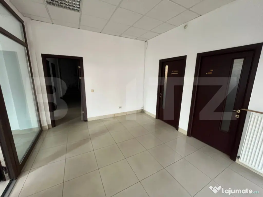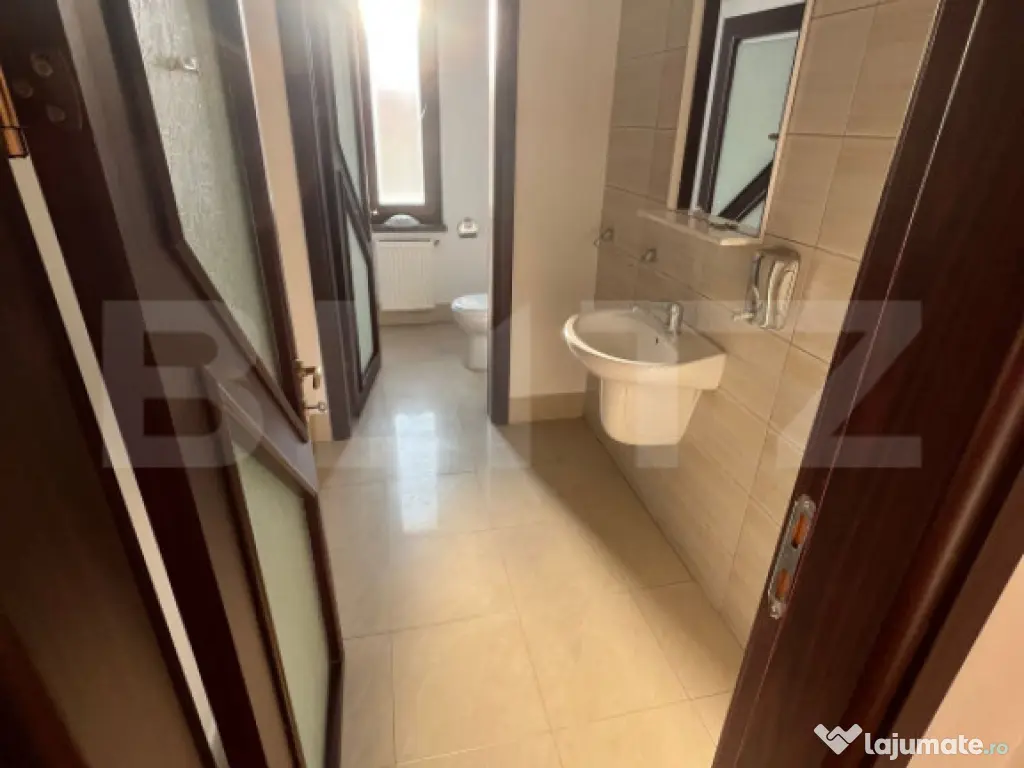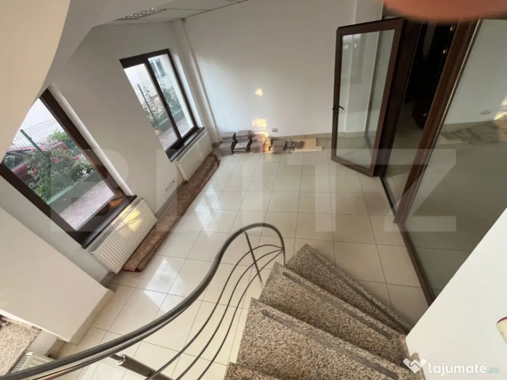 Blitz va ofera spre închiriere o clădire spațioasă și versatilă, cu suprafață totală de 600 mp (586 mp utili), potrivită pentru multiple activități: birouri, clinică medicală, centru educațional, firmă logistică, call-center sau orice afacere ce necesită spații bine delimitate și autorizate. Se poate inchiria si pe etaj sau toata cladirea ✅ Construcție solidă 2006–2008, din cărămidă portantă, cu stâlpi din beton armat, proiectată pentru rezistență seismică ridicată ✅ Fără subsol – stabilitate 100% ✅ Izolație termică exterioară + interioară ✅ Autorizație ISU deținuta ???? Compartimentare pe 3 niveluri: ???? Parter – 200 mp (aprox.): 4 camere mari 2 băi Finisat complet: gresie, pereți izolați fonic, uși din placaj ușor, termopane, compartimentări interioare din rigips 2 ieșiri (una separată, ideală pentru acces logistic sau personal) Centrală proprie, calorifere, utilități complete: curent, apă, gaze, canalizare ???? Etaj 1 – 200 mp (aprox.): 4 camere 2 băi Centrală proprie și aceleași finisaje moderne ca parterul ???? Etaj 2 – 186 mp (aprox.): 2 camere mari, open-space sau compartimentabile Fără aer condiționat, dar cu posibilitate instalare Finisaj similar, izolație și geamuri termopan ???? Alte facilități: 3 locuri de parcare în fața clădirii Acces facil din stradă principală Posibilitate amplasare firmă/bannere publicitare Ideal pentru activități ce necesită spații distincte pe niveluri (sedii firme, saloane, clinici, cabinete, școli private, birouri etc.) ???? Preț: 10 €/mp – Total 5.000 €/lună ???? Disponibilitate imediată | Facturare pe firmă | Contract pe termen lung Cod ofertă / ID BLITZ: P149852 Id intern: P149852 An finalizare construcție: 2006 Stadiu construcţie: Finalizat Clasă birouri: A Tip imobil: Clădire de birouri
