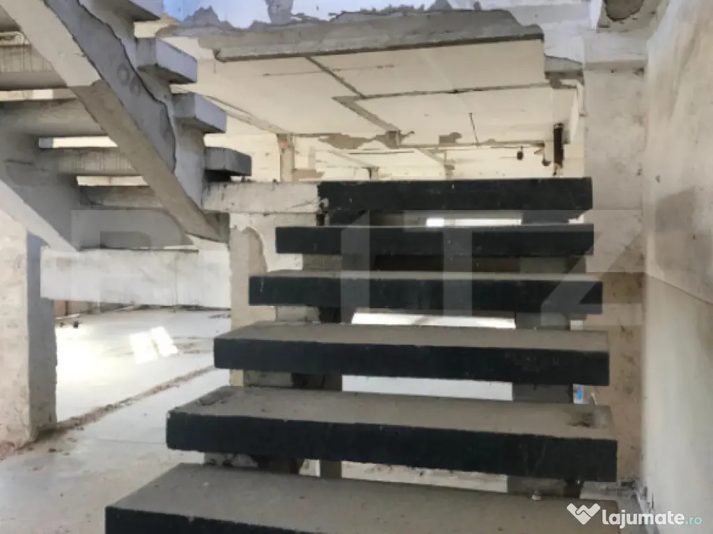 Imobilul este dispus pe două etaje, fiecare cu aproximativ 260 mp, la care se adaugă mansardă, rezultând un potențial total de aproximativ 780 mp construiți. Spațiul este nefinisat și necompartimentat, ceea ce oferă libertatea totală de amenajare în funcție de necesitățile viitorului proprietar sau chiriaș.