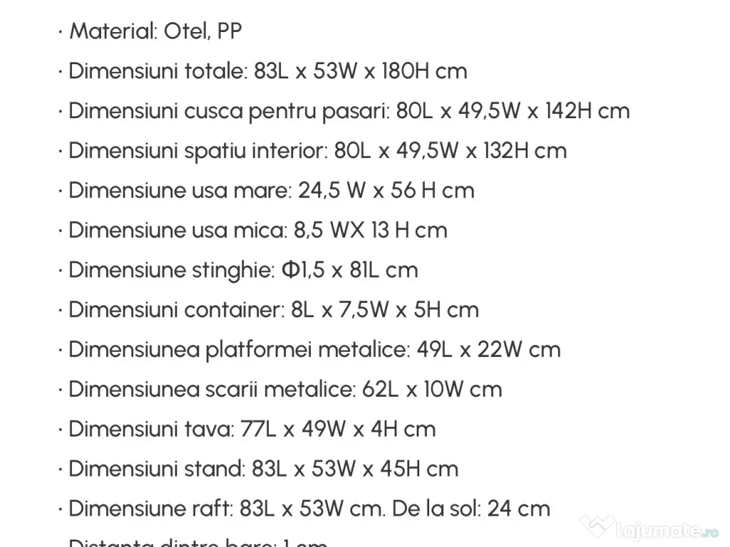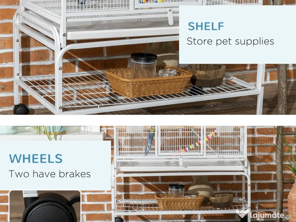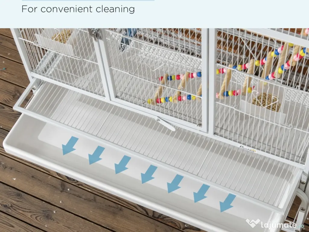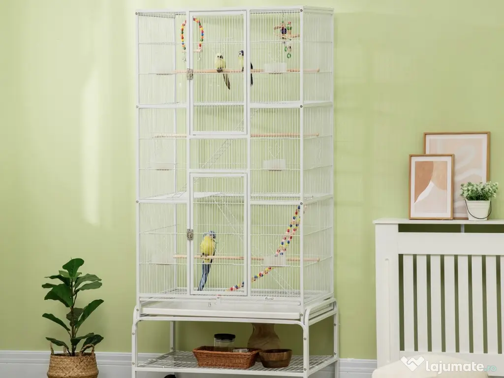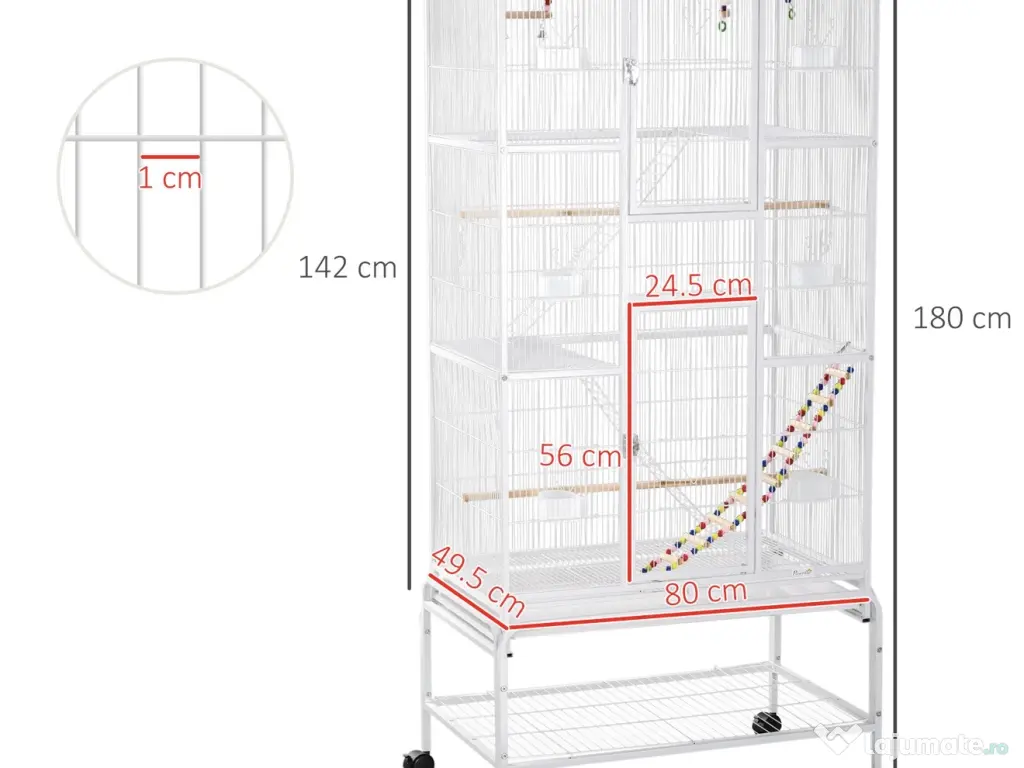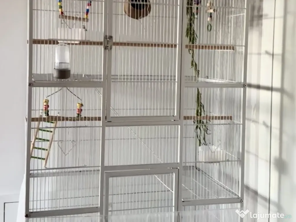 Colivie mare pe roți pt păsări, într-o stare foarte bună. Ofer în plus și accesorii noi și husă pentru protecție