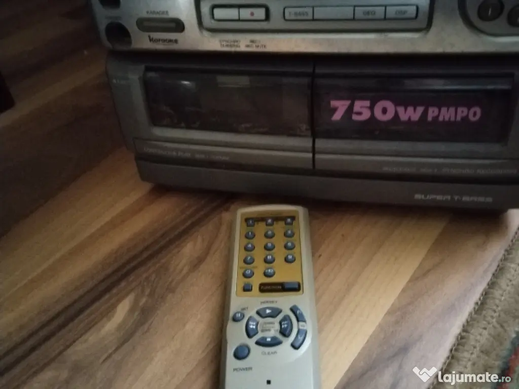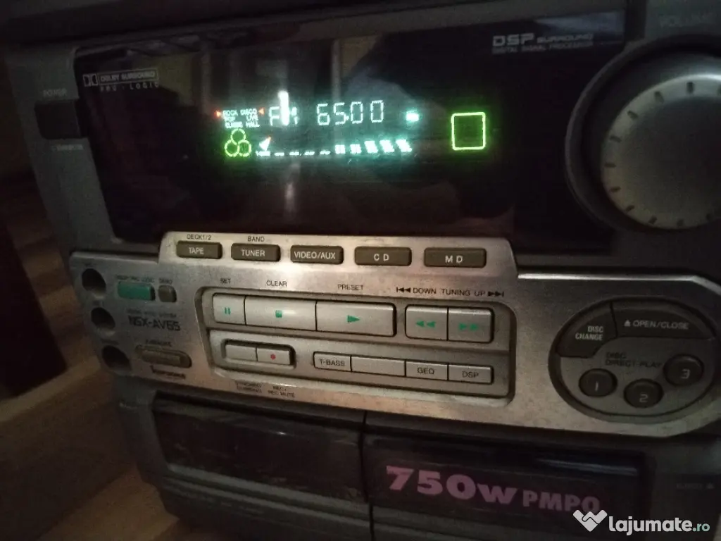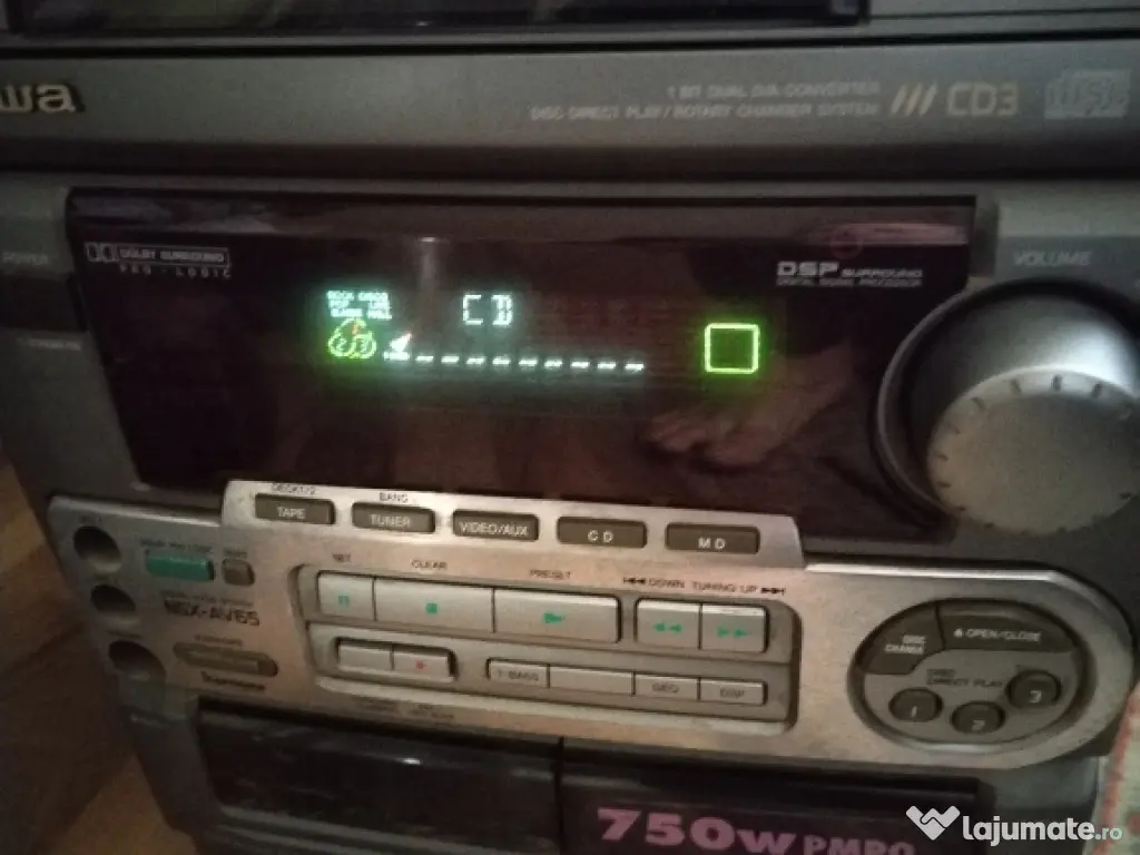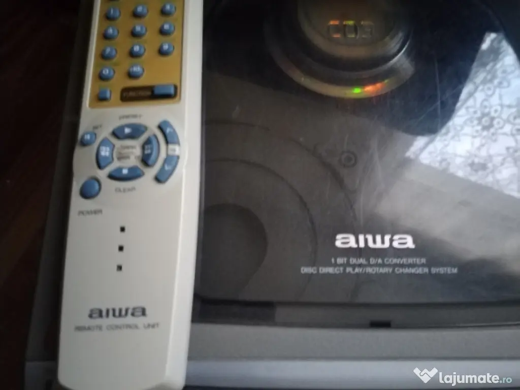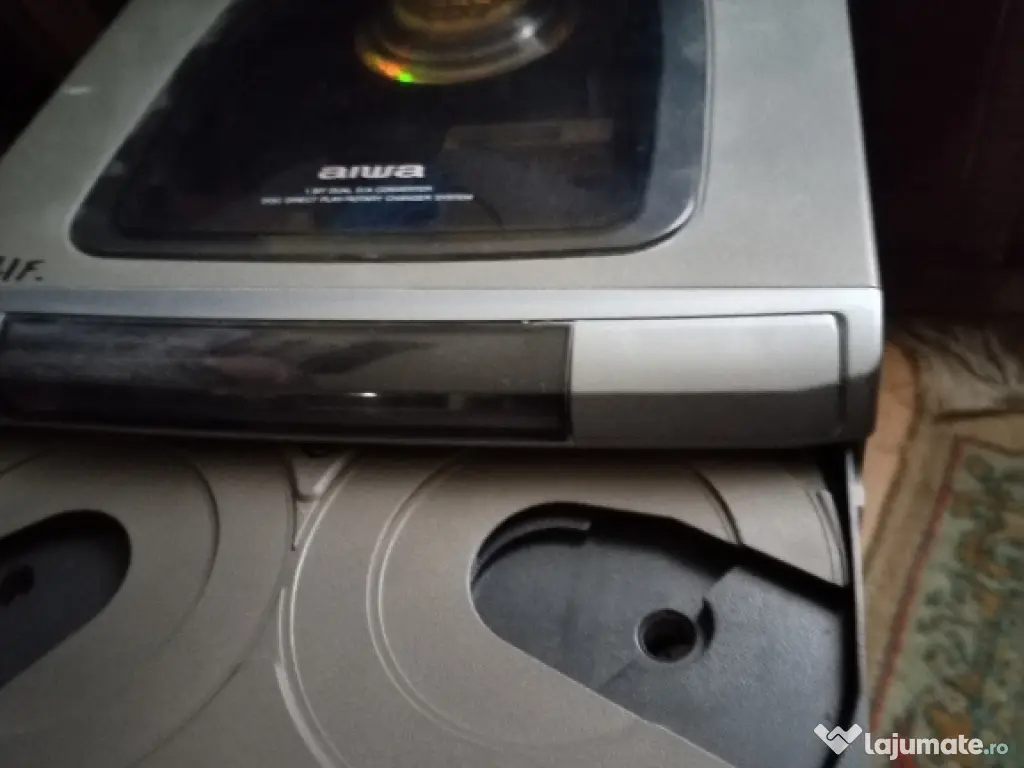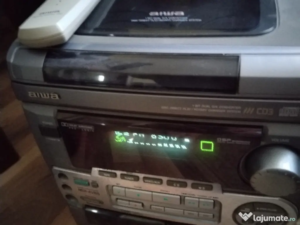 Vând combina audio Aiwa cu radio fm stereo și afișaj digital. Intrare auxiliara și amplificator stereo 2x75 wați funcțional . Telecomanda originala. CD învârte dar nu citește discurile. Dublu Casetofon defect mecanic
